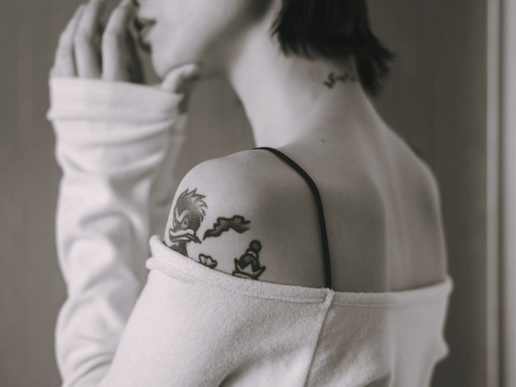 pile off shoulder body suit