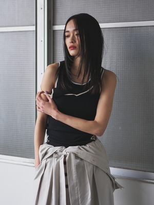 リバーシブルで着用出来るニット素材のデザインタンクトップ