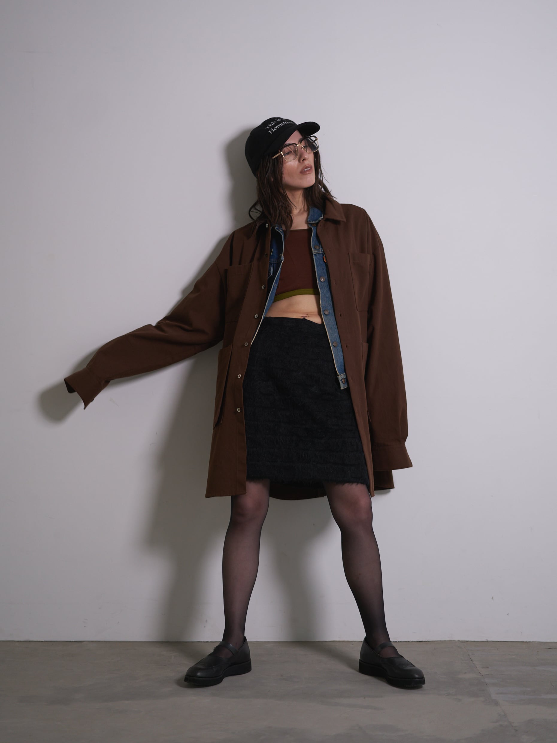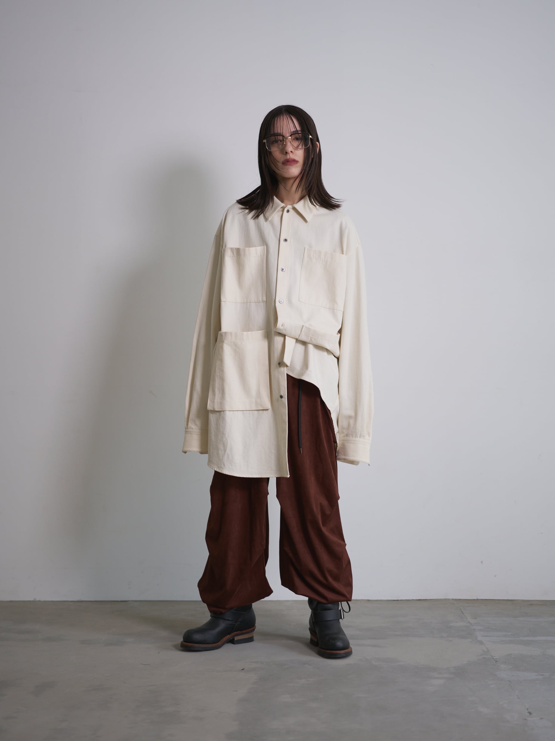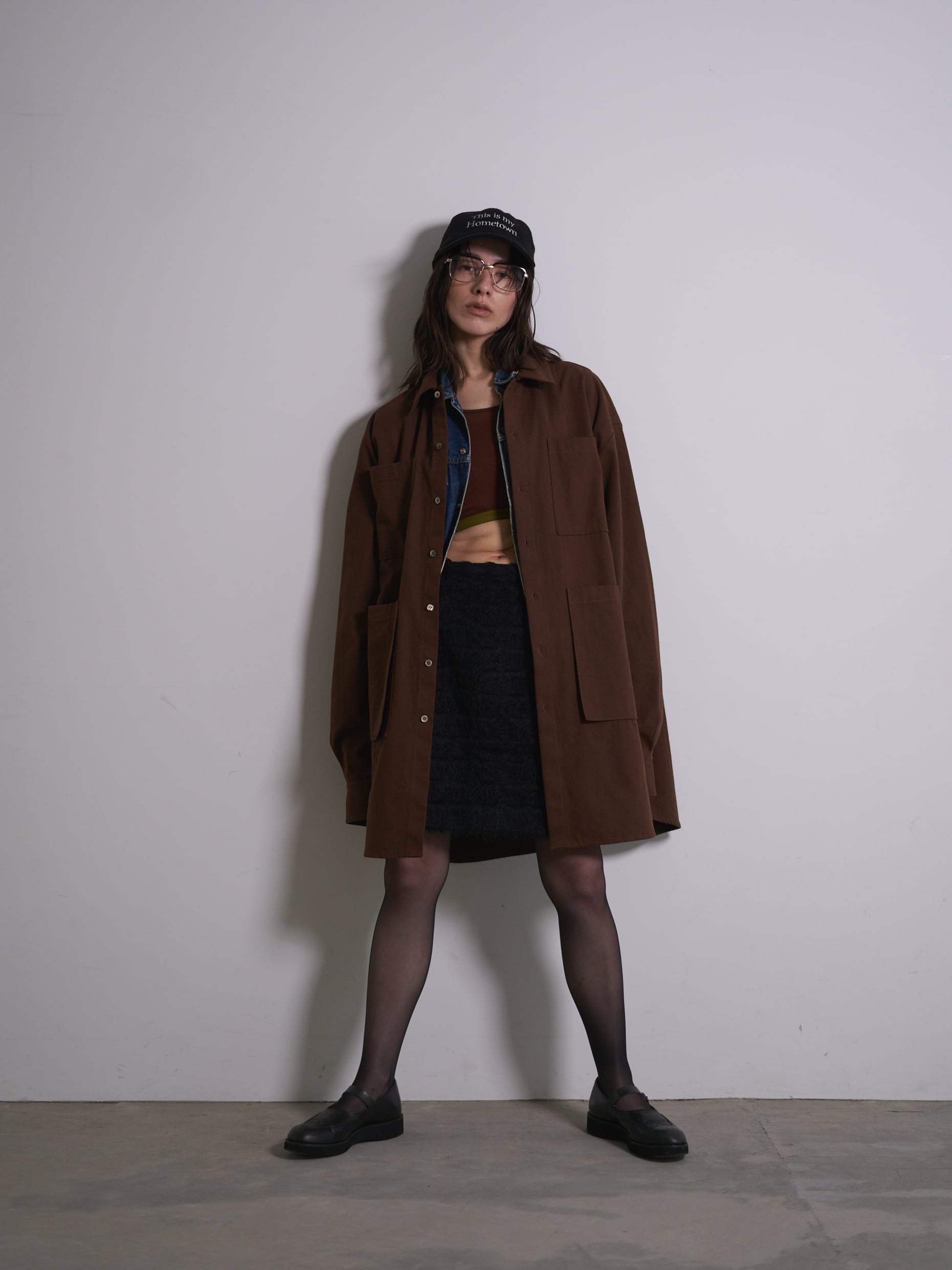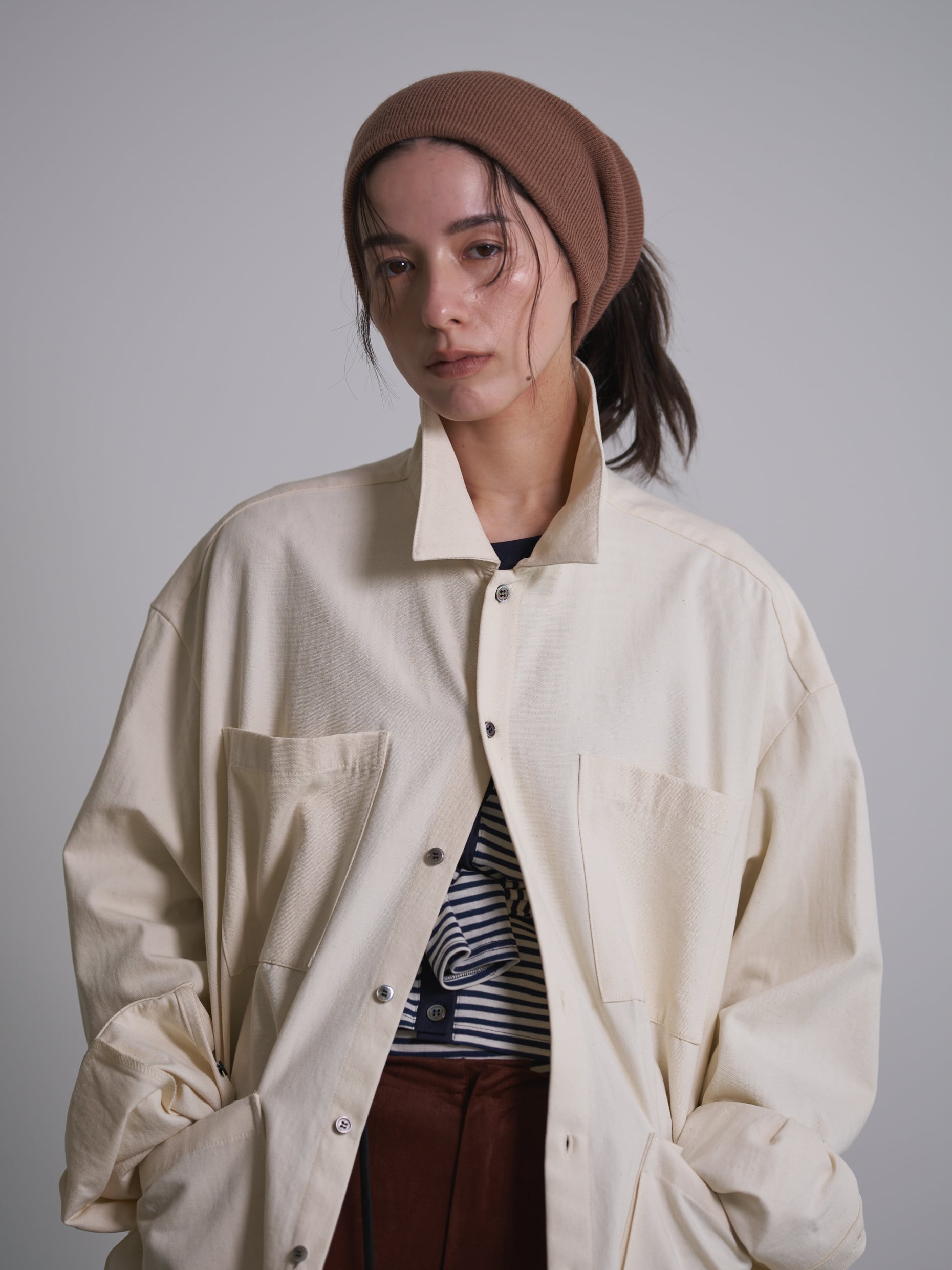 柔らかいキャンバス地見えした綿100%素材のオーバーサイズのシャツコートです。