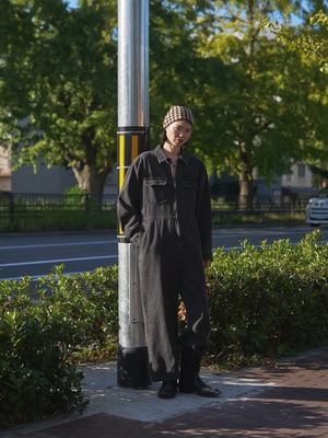 13ozのたてスラブのある表情の可愛いデニム生地を選び選び綺麗めに仕上げたデニムジャンプスーツです。
