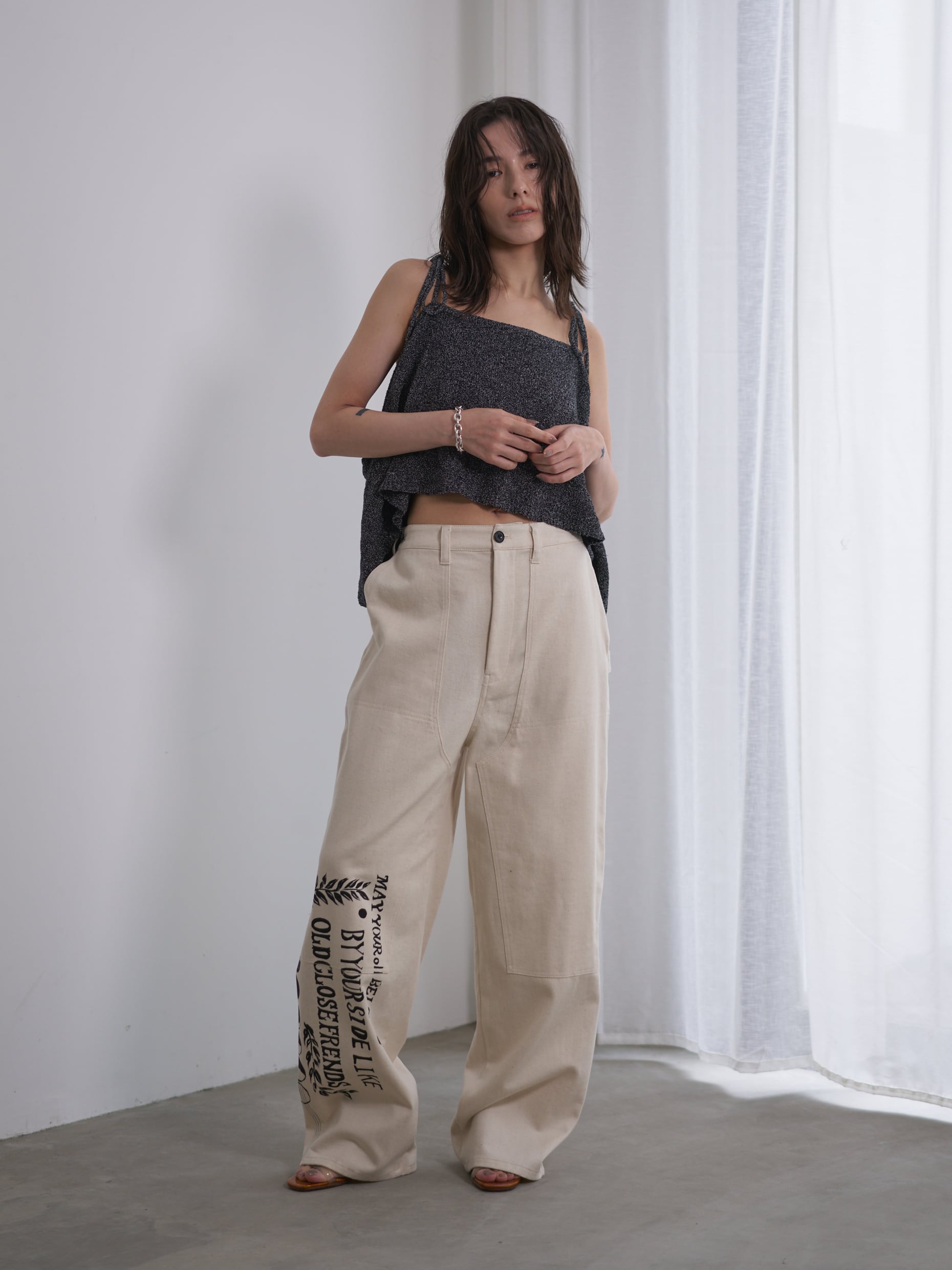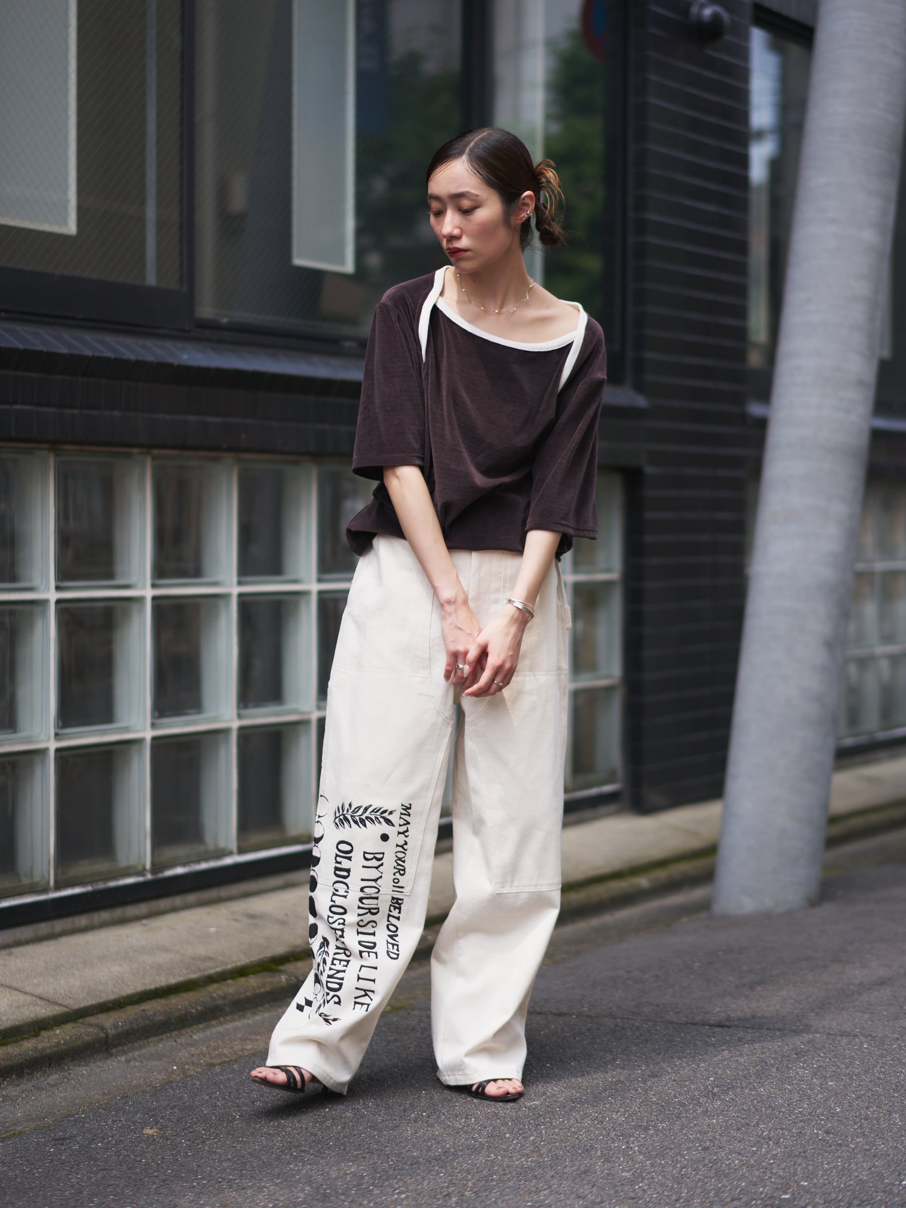 ワイドなサイズに設定したペインターパンツはボリュームのあるシルエットで、夏の軽いトップスとの相性よく履いていただけます。