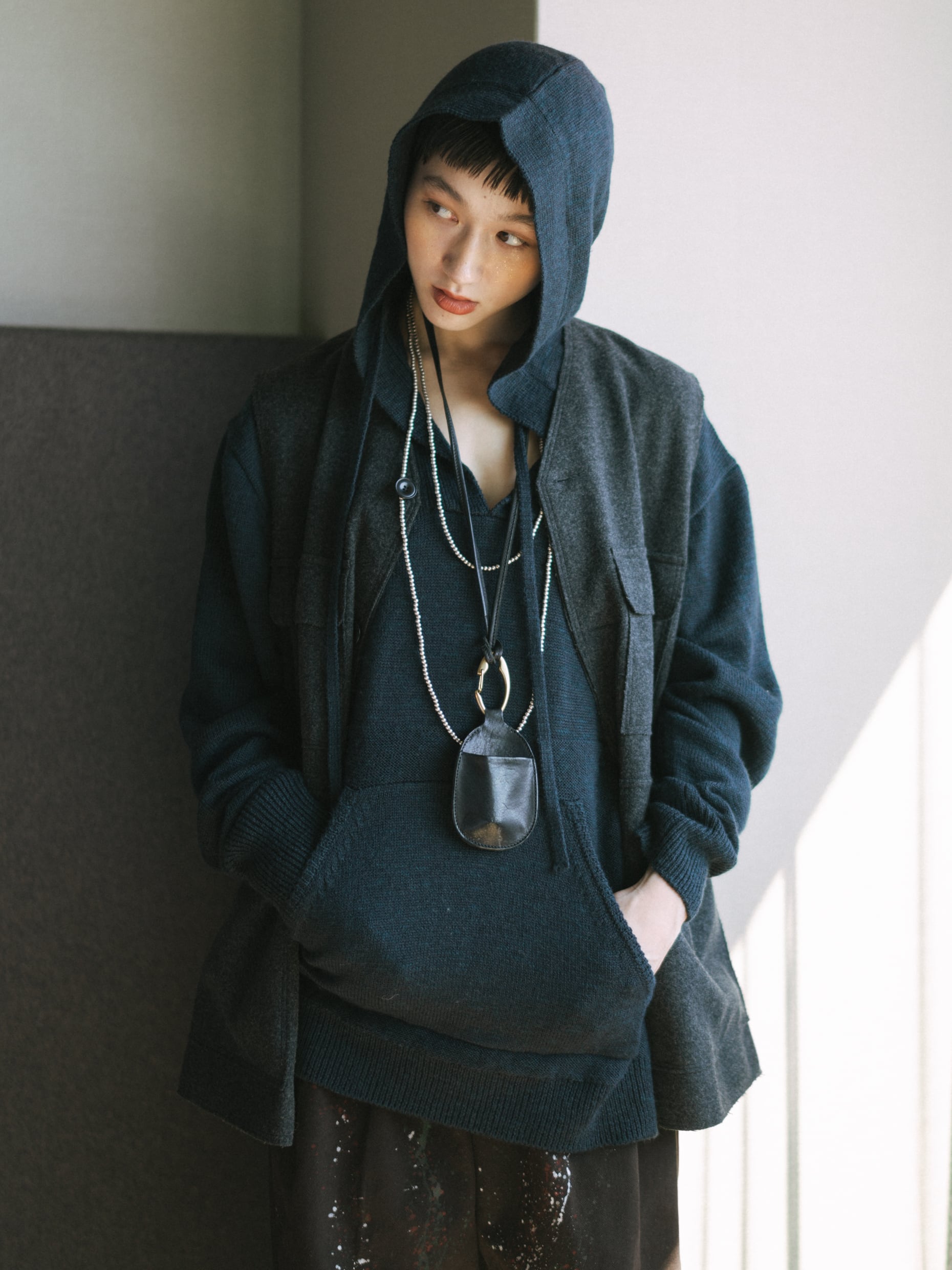 紐も同じ革を使用し作成しており、首の後ろで簡単に長さ調整していただけます。