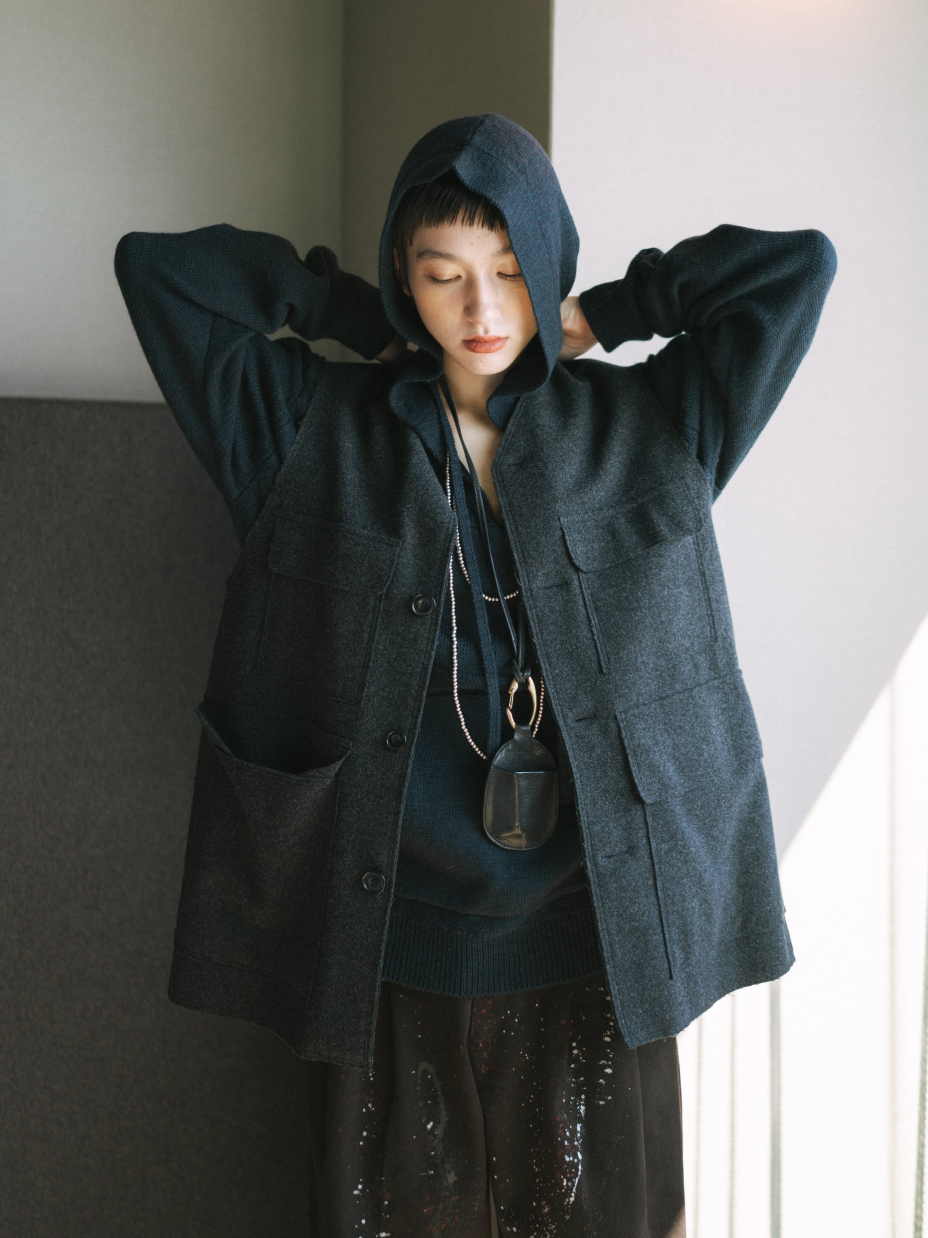 ずっと作り続けているfishing vsetをアップデートし、今回はウール生地でつくりました。