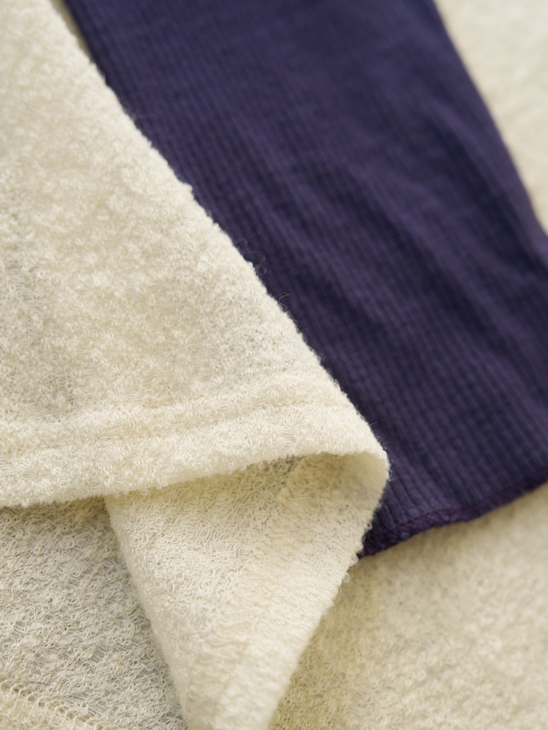 編みでレース地のような表面感を表現した生地は無地見えながらも立体感のある見え方です。
