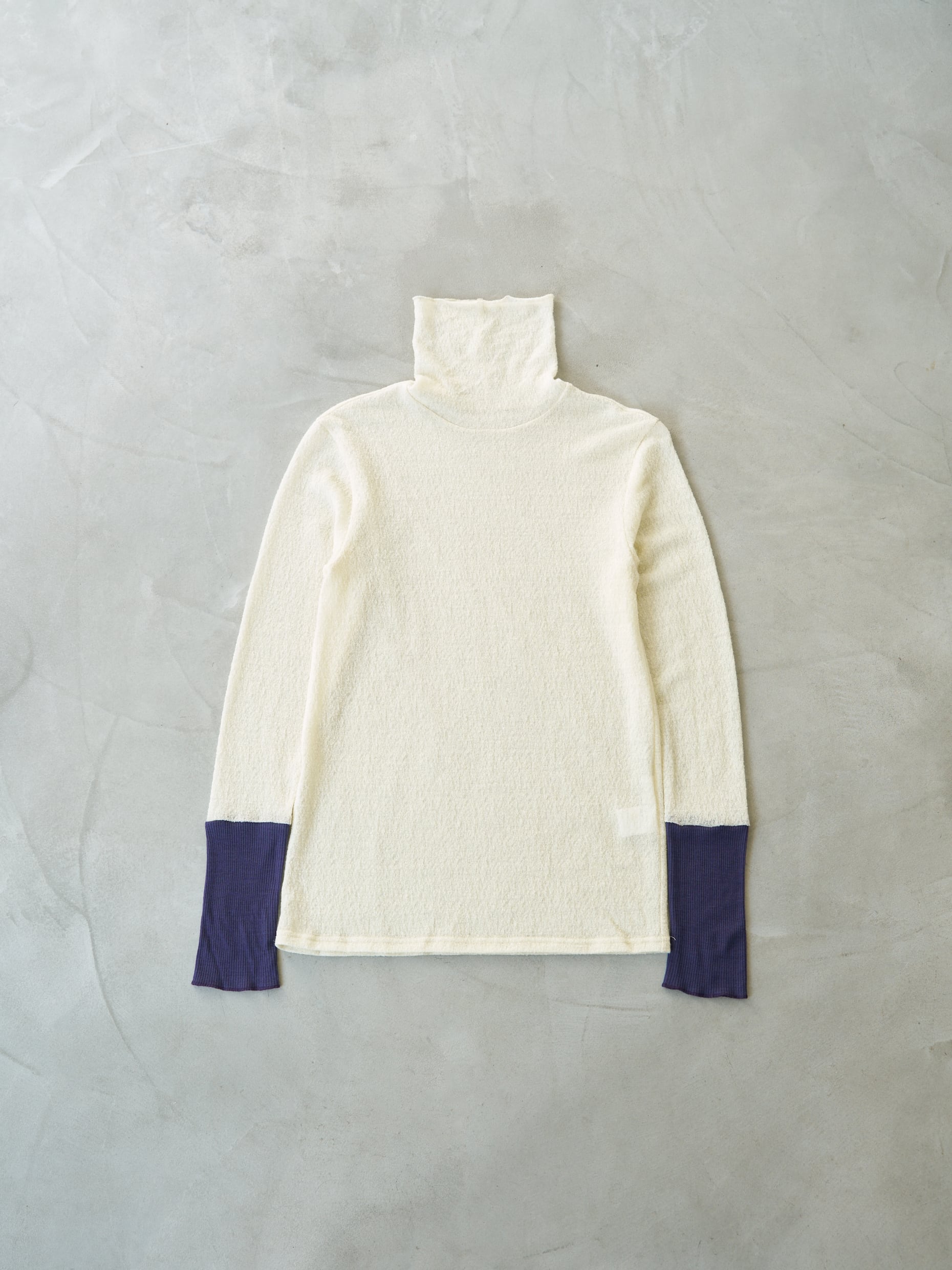 薄手の生地ですがウール混率が高くとても暖かいので、ニットが苦手な方にもオススメの一枚です。
