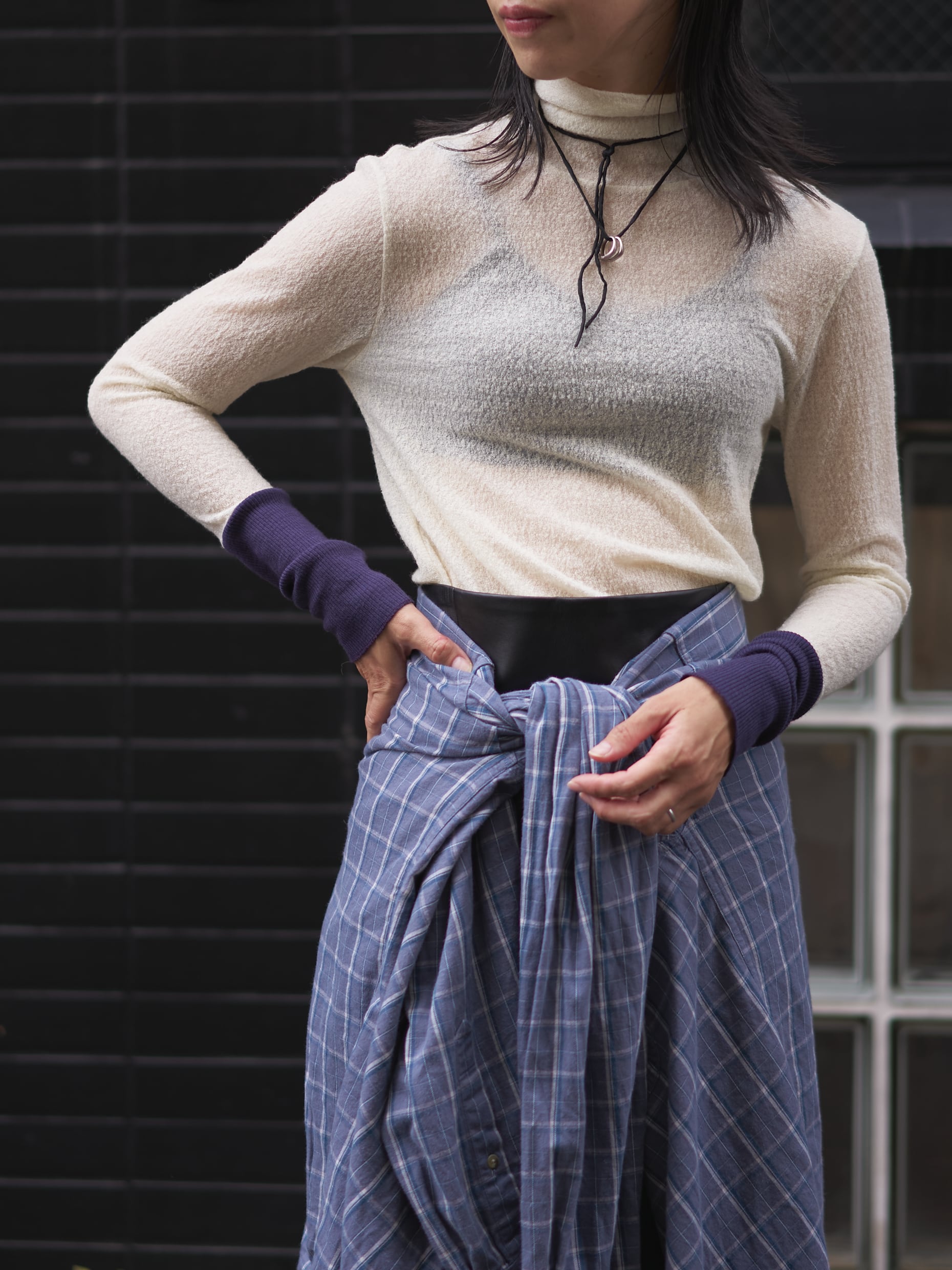 素肌に着てもチクチクしない加工を施した生地は肌あたりがとてもなめらかで、トップスとして一枚で着るのはもちろん、インナーとしてスウェットやニットの中に着ていただき、お袖やからチラリと覗かせても可愛いように、長めに設定した袖口には配色のポイントになるような可愛いカラーを選びました。