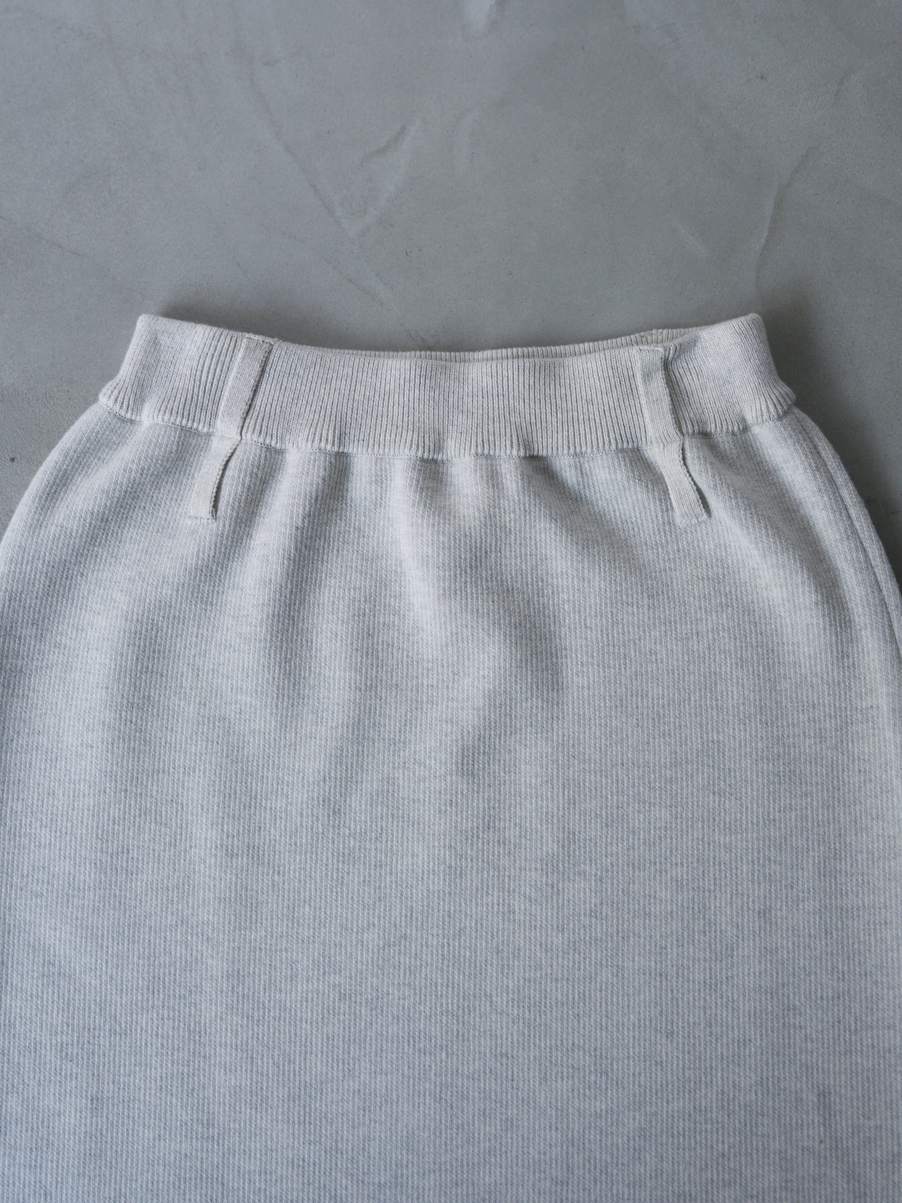 ニット表が綿/カシミアの糸、裏は膨らみを出すためにポリエステルの糸を使って接結編みをしているニットはニットとは思えない張りが出ることでシルエットが立体的に出るように仕上げました。