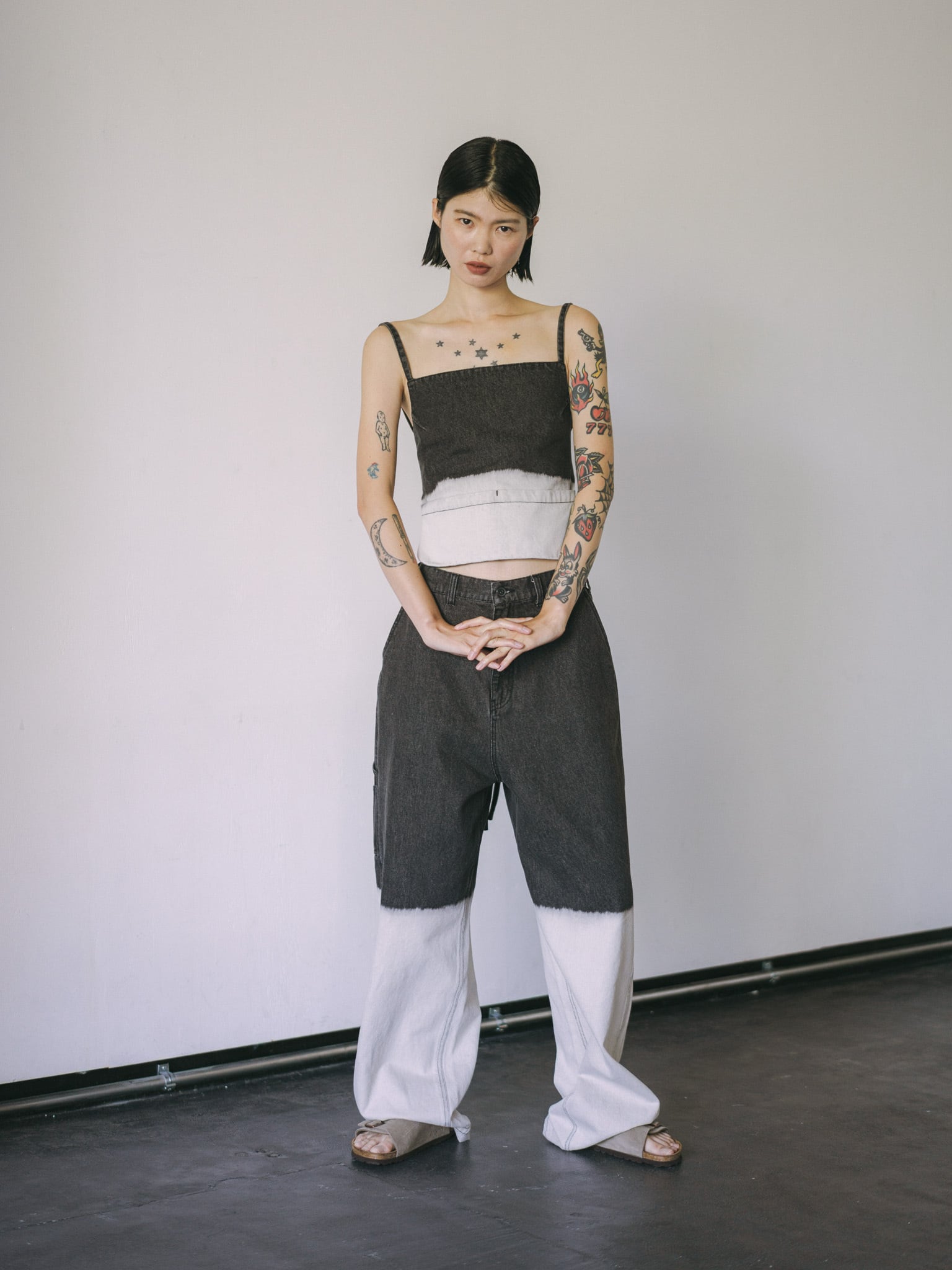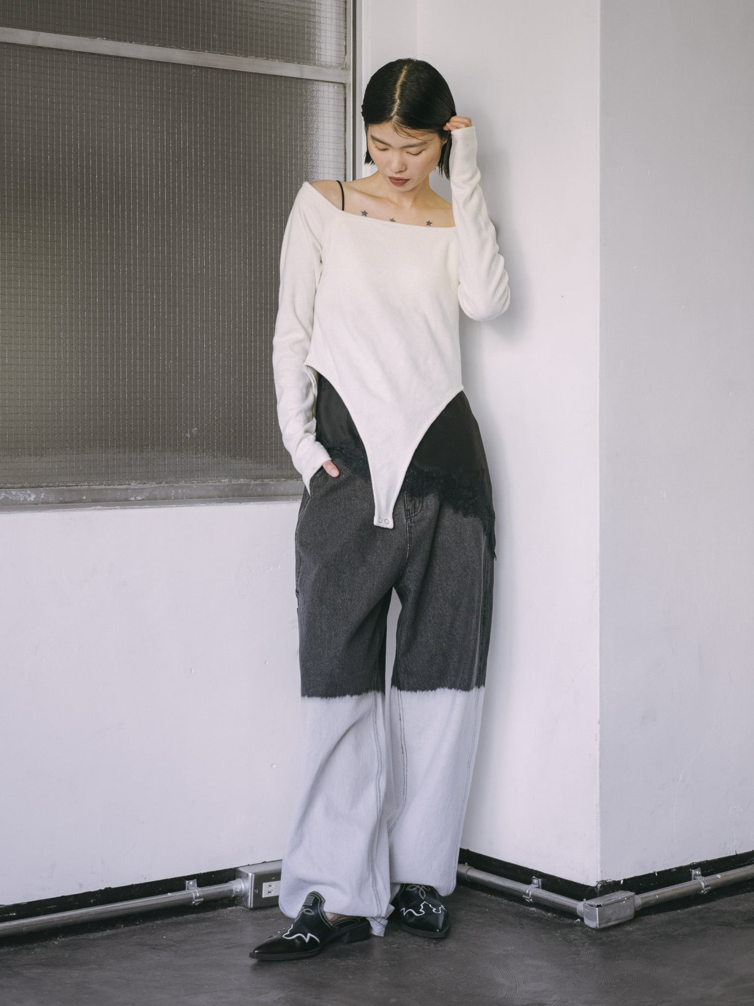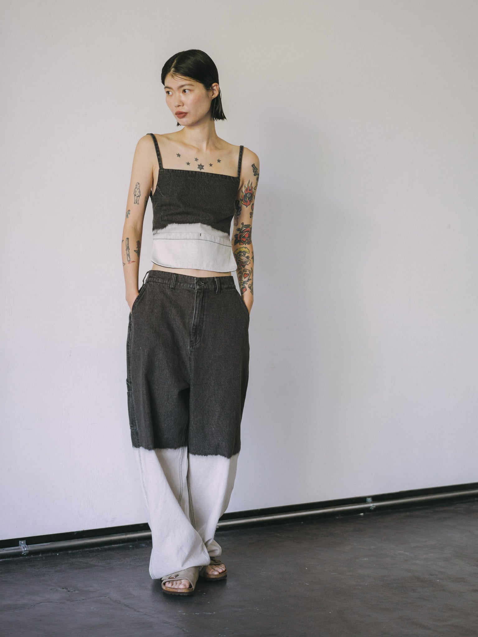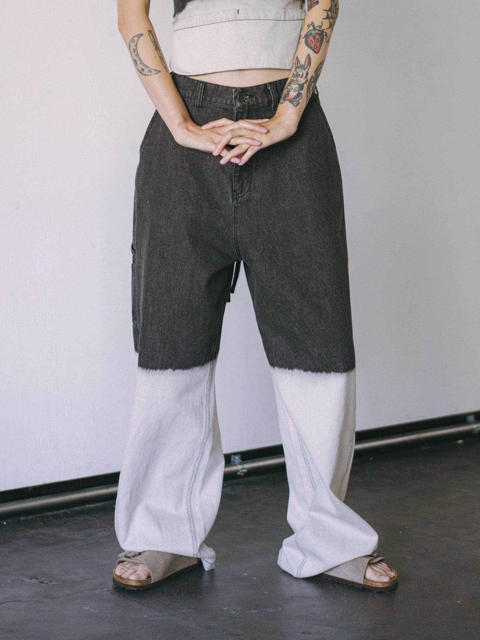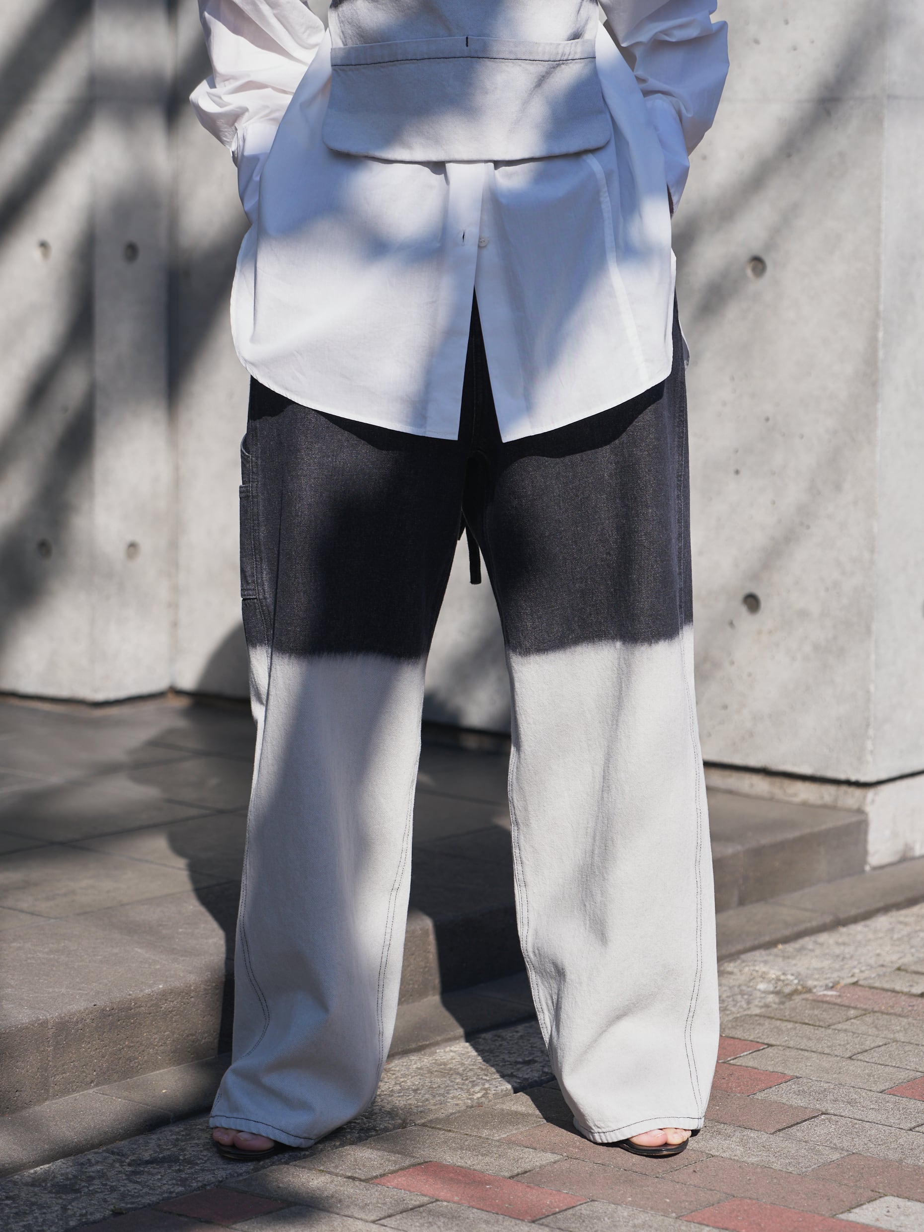 ツールポケットなど、ペインターパンツらしいディティールを入れつつ、膝あたりからブリーチをかけているので一枚で存在感のある仕上がりになっています。