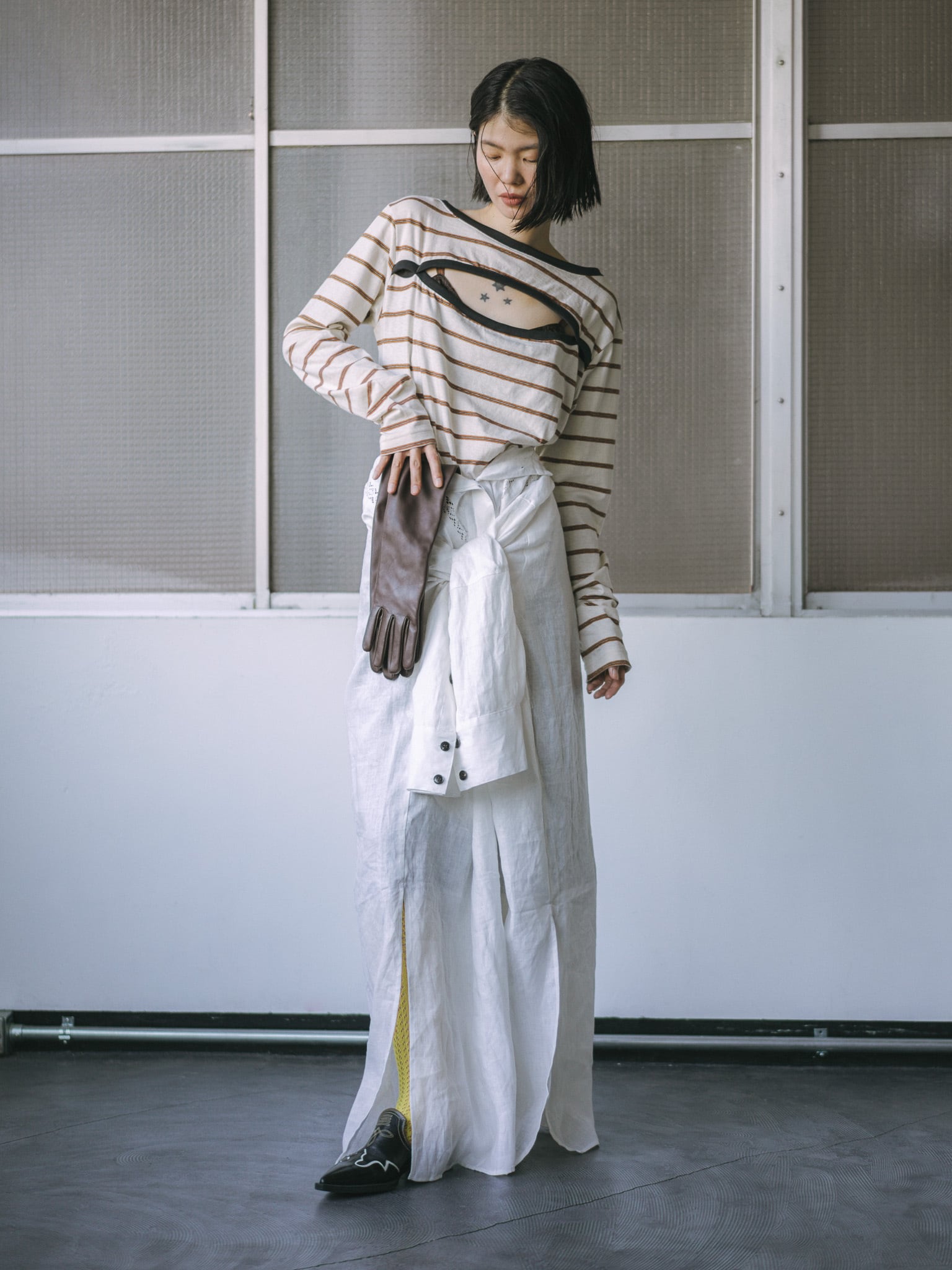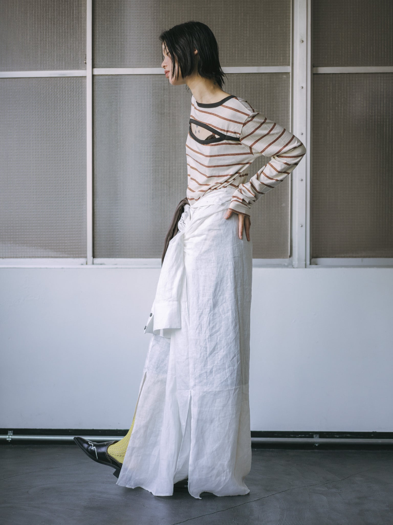 ジャケットのインに着ているコーディネートの時は空き部分に首を通しホルターネックのような着方をしているのですが、そちらの着方もオススメです◎