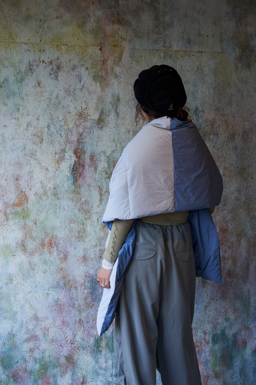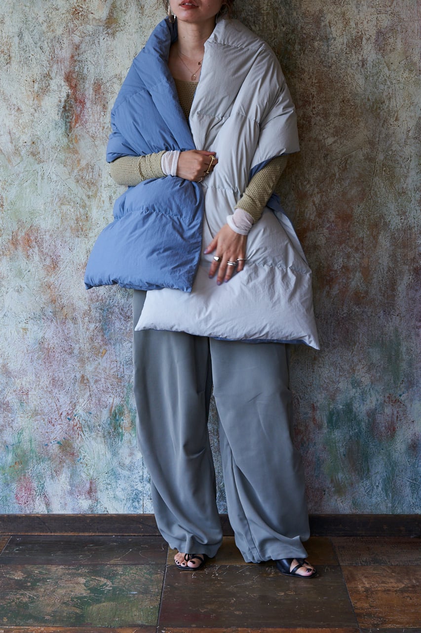 中わたには軽く保湿性に優れたダウンを使用しており、身体をしっかりと包み込んでくれるサイズ感でアウター代わりにもお使い頂けます。