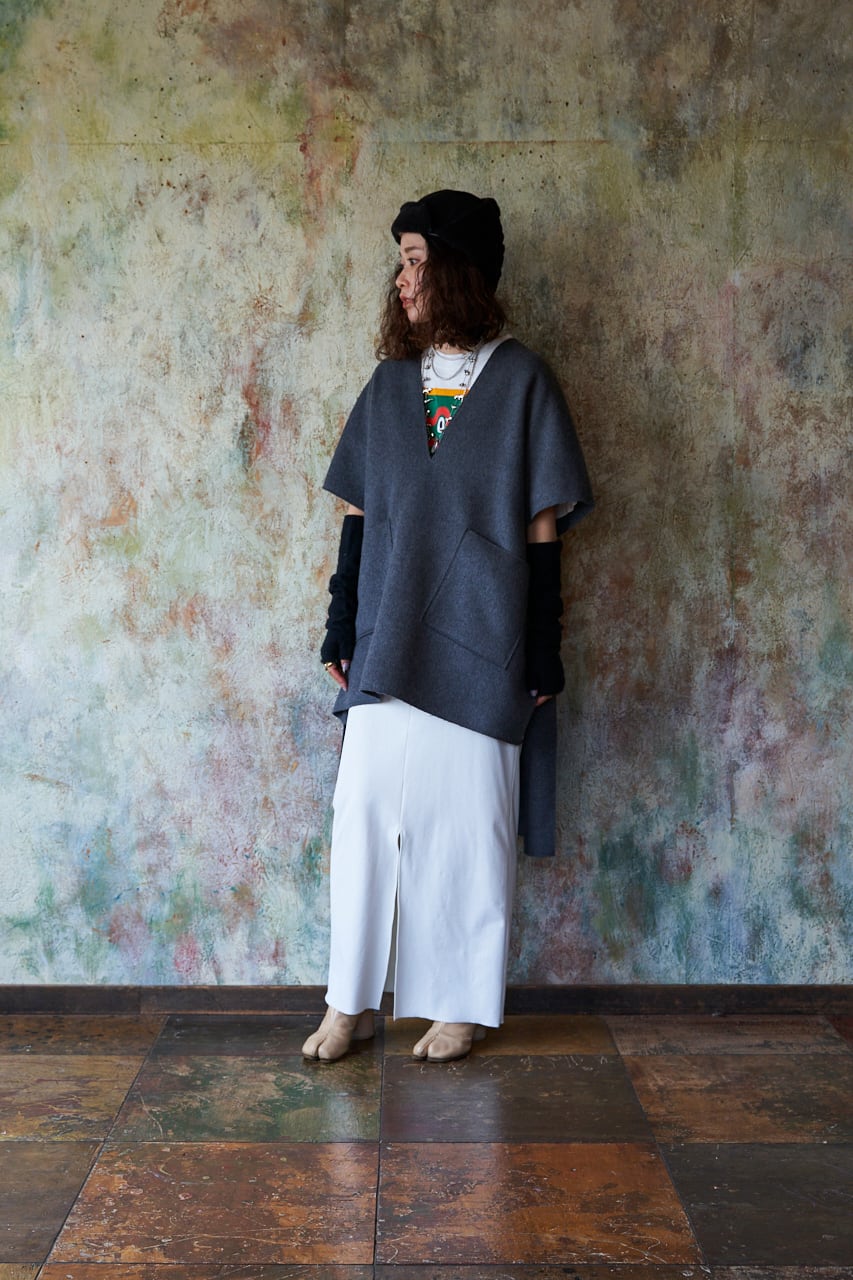 ゆったりとしたサイズ感でインにジャケットや、肉厚のニットなども入れて頂けるので、軽いコート代わりにも。