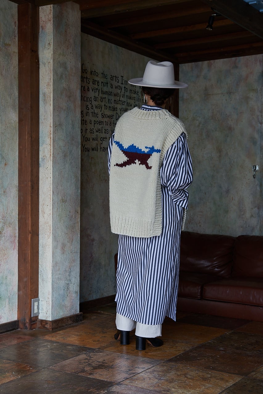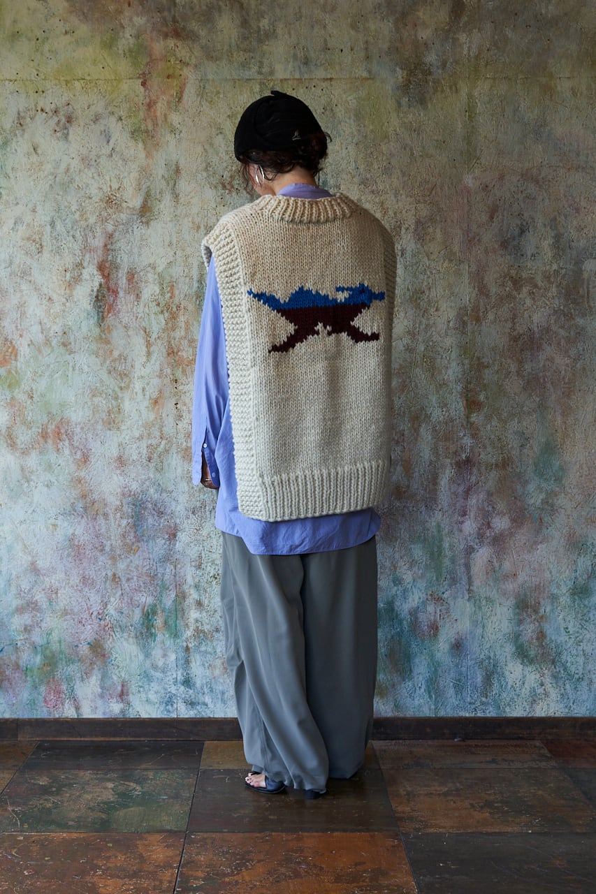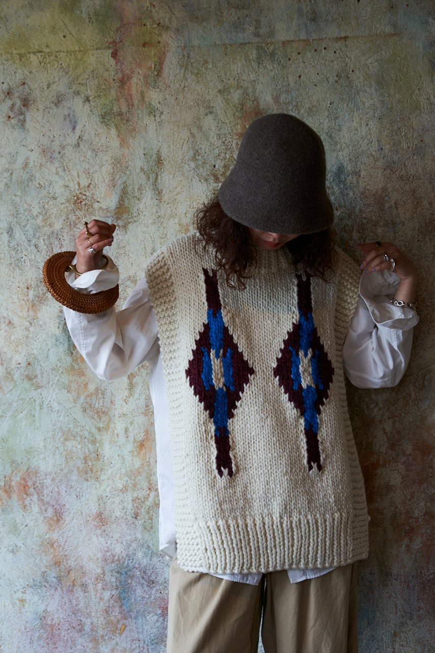 オルテガ柄をモチーフにしたハンドメイドのニットベストになります。