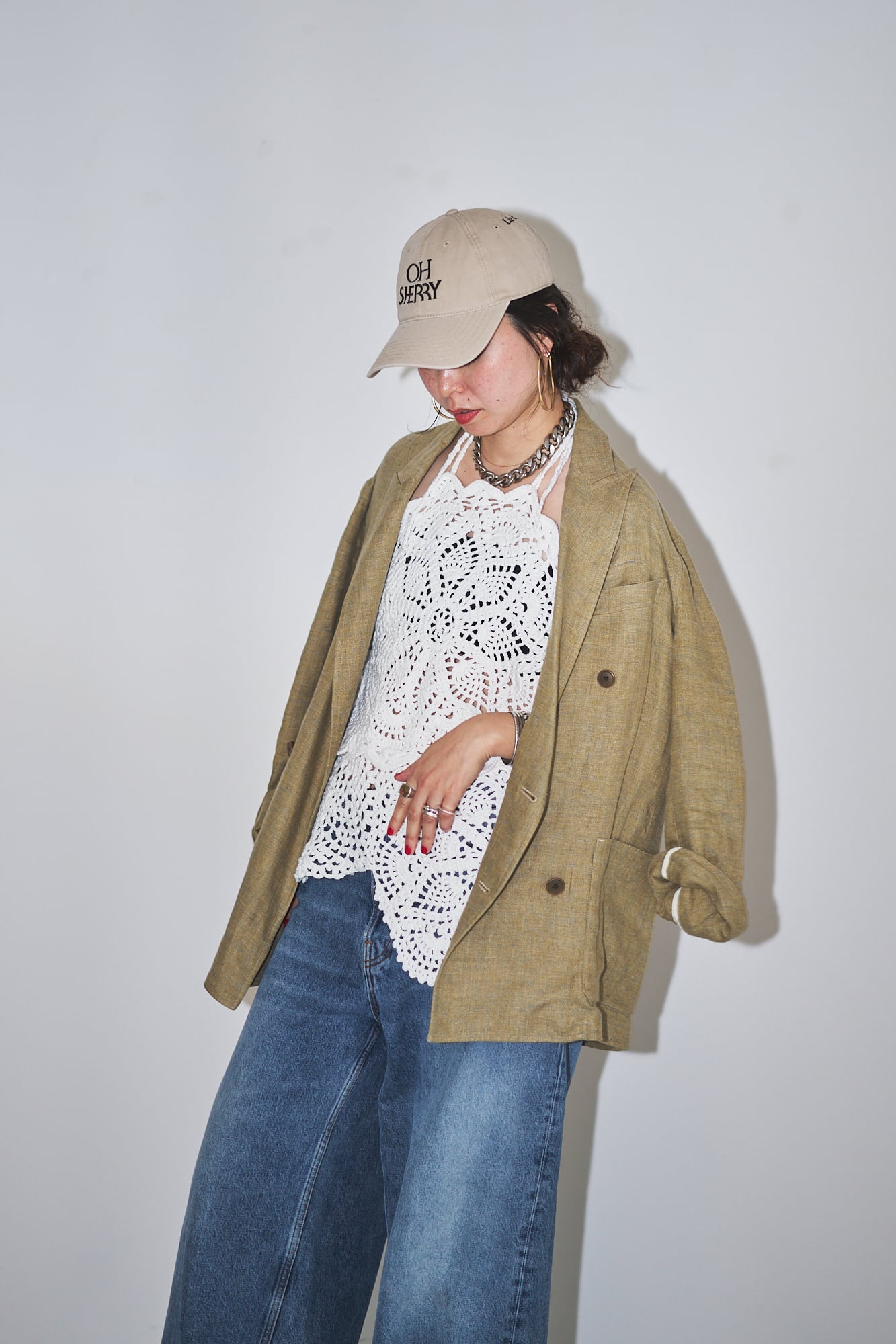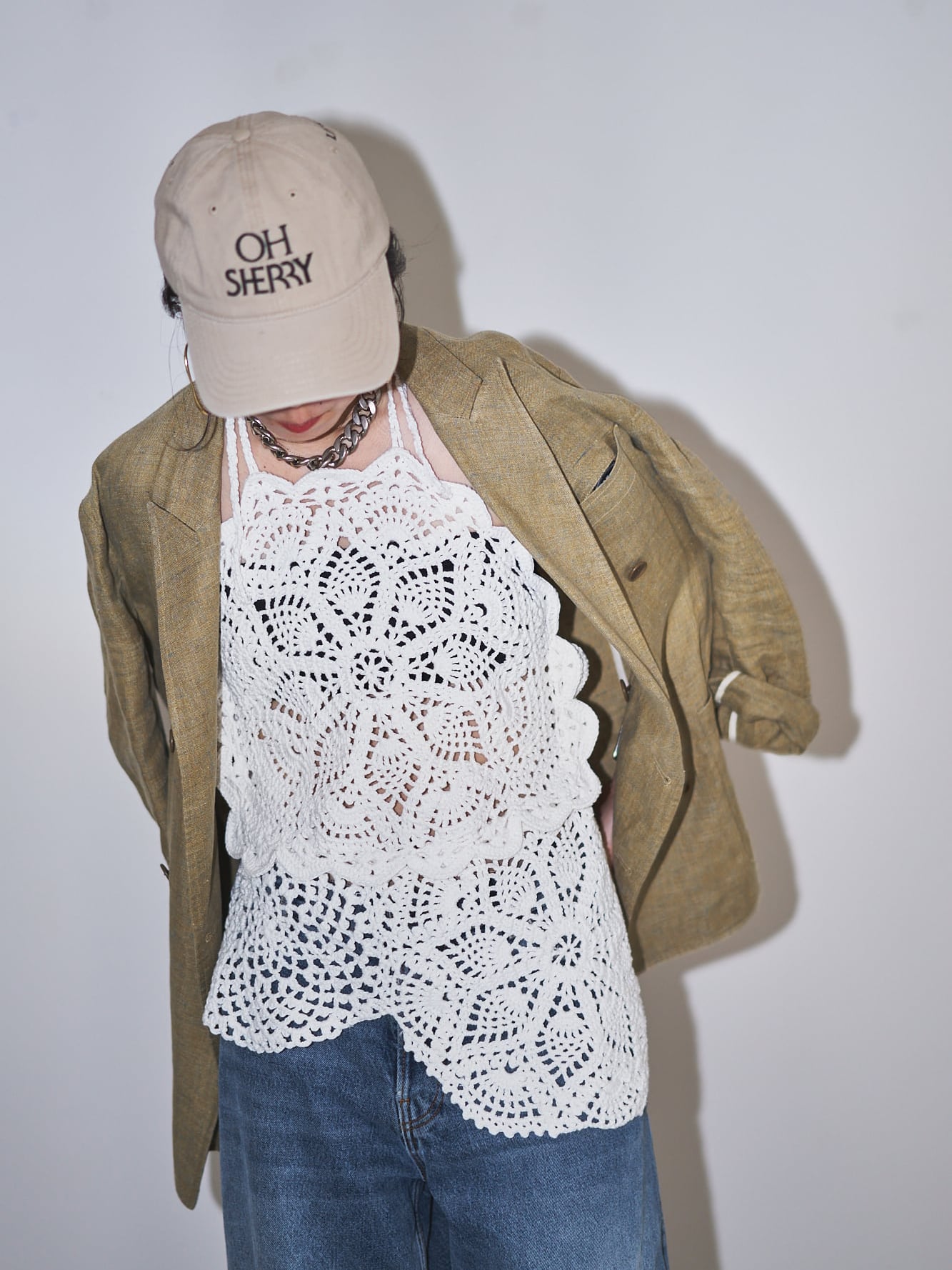 Emmaは"神は私たちと共にいます"という意味のヘブライ語が語源。フランスでは相手を包み込むような大きな愛情をもってほしい、という願いが込められてつけられるこの名前のイメージにぴったりな手編みのかぎ針で編んだビスチェです。