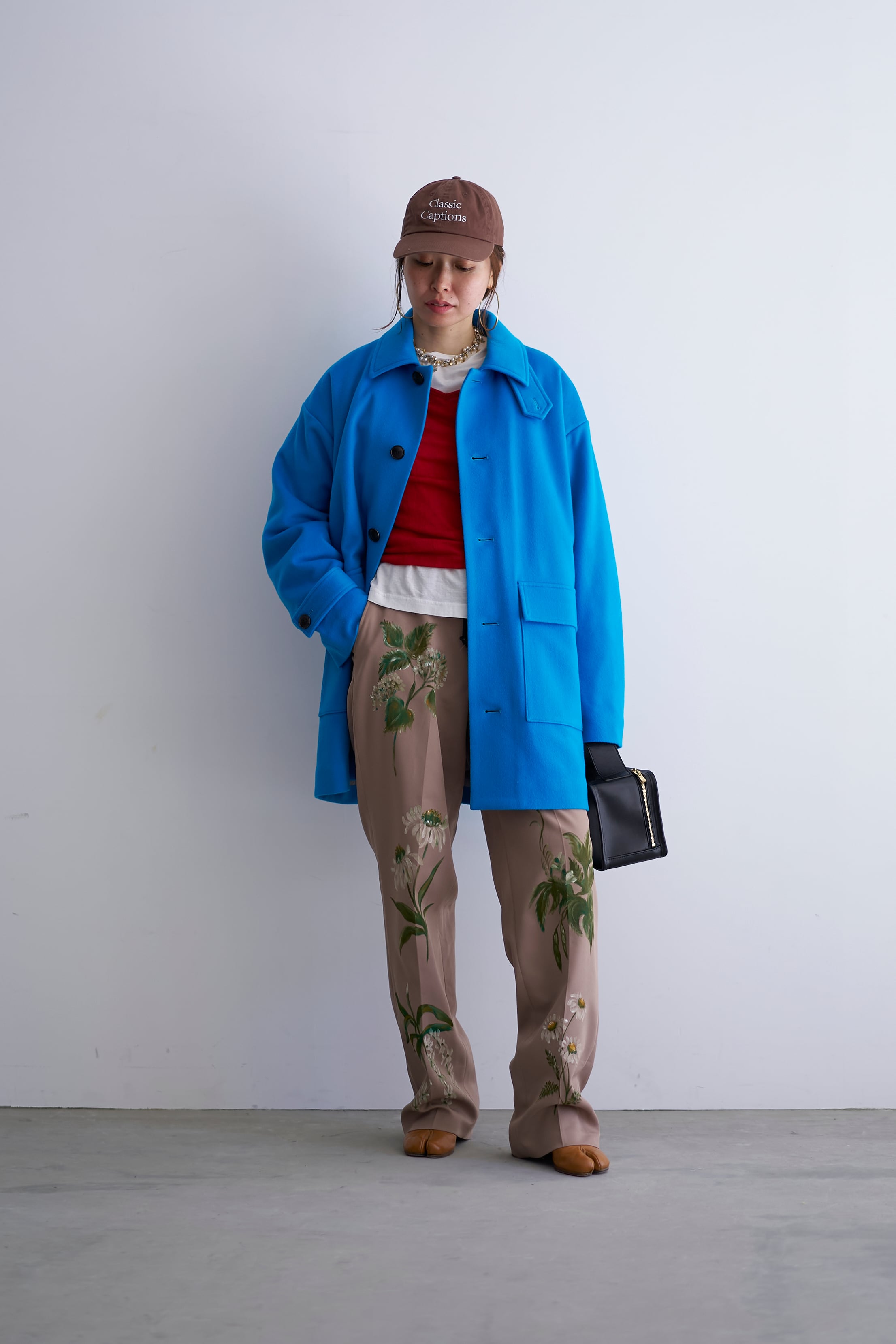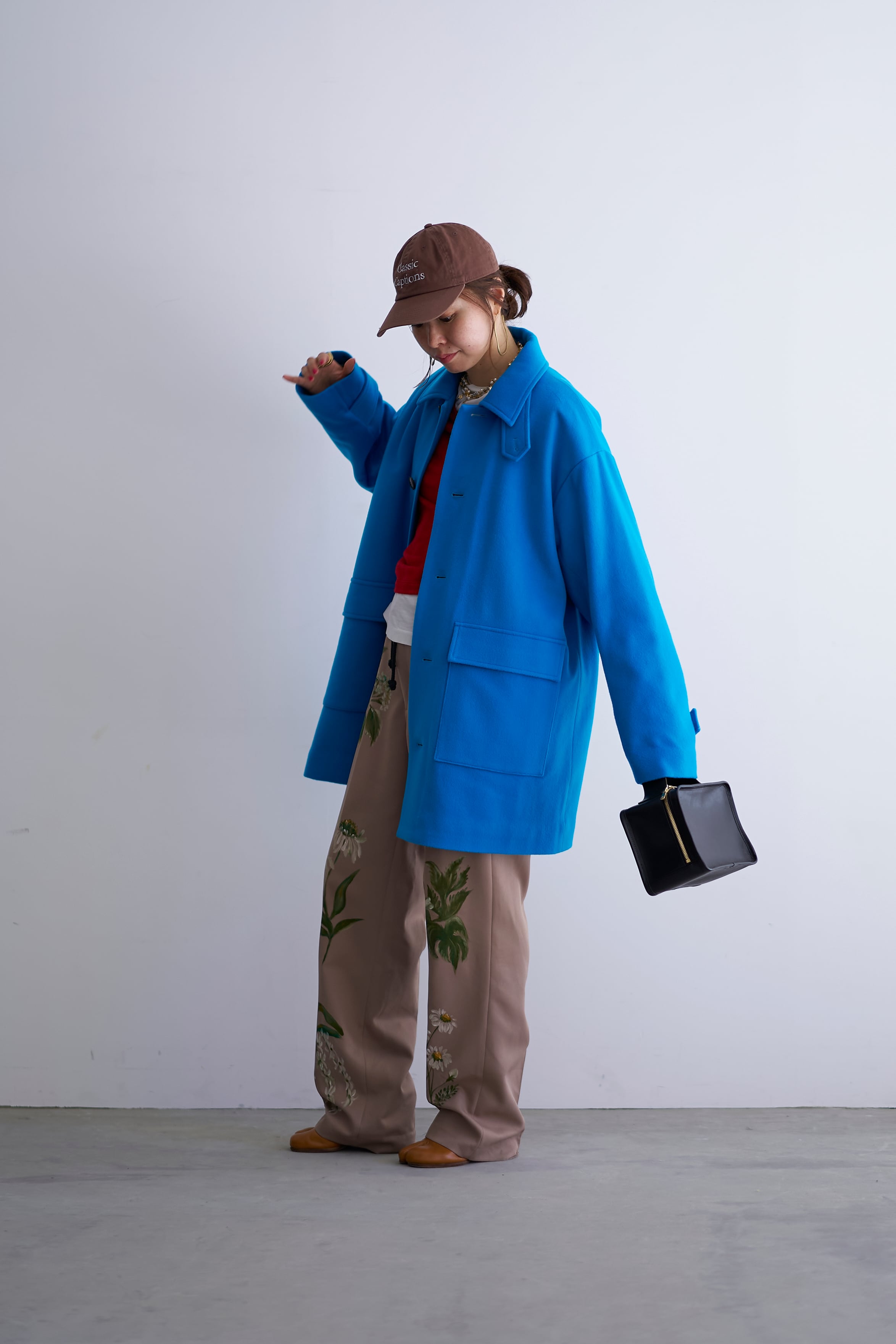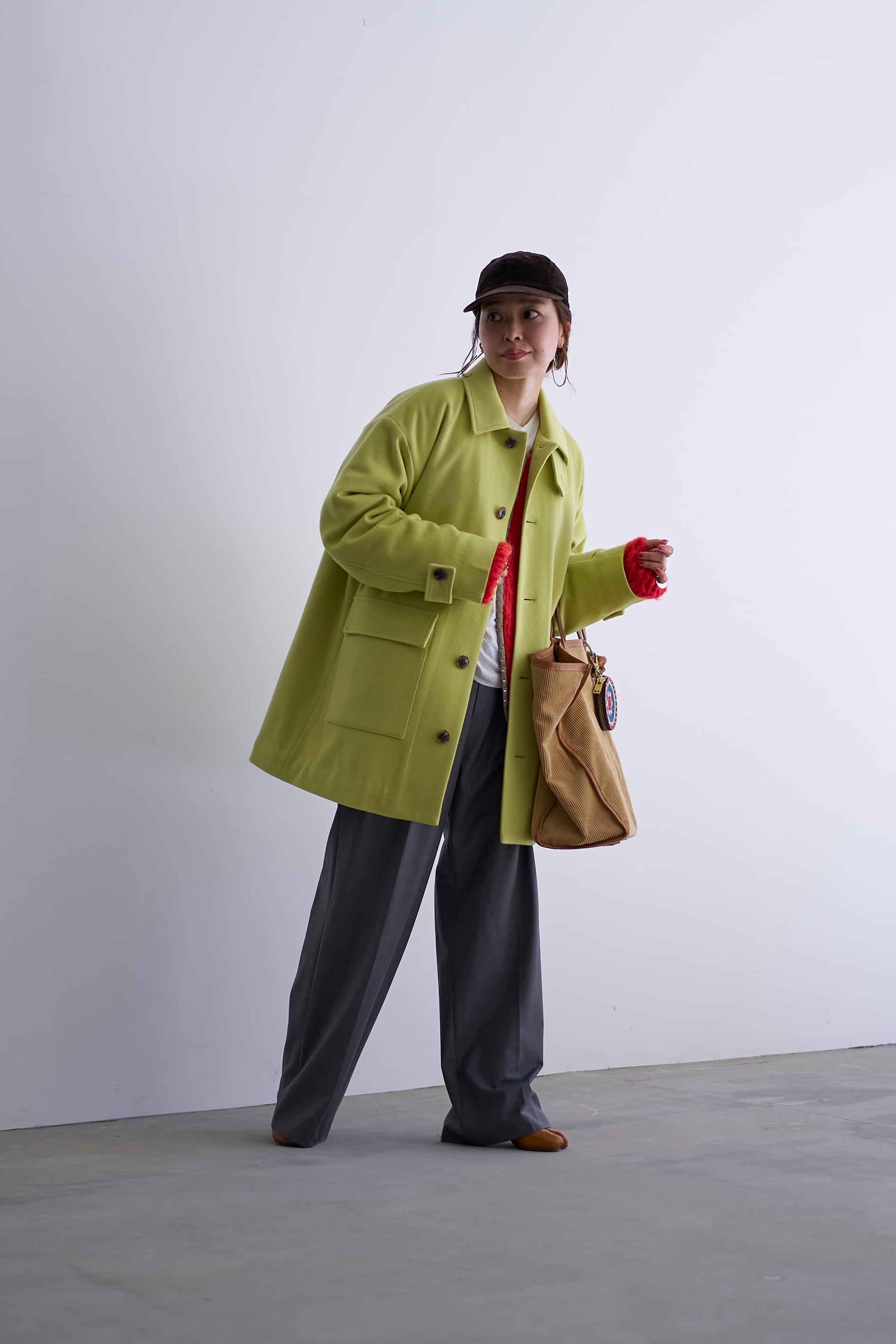 どうしても暗くなりがちな冬のスタイリングにカラフルなコートは一枚持っているとそれだけでコーディネートが華やかに。