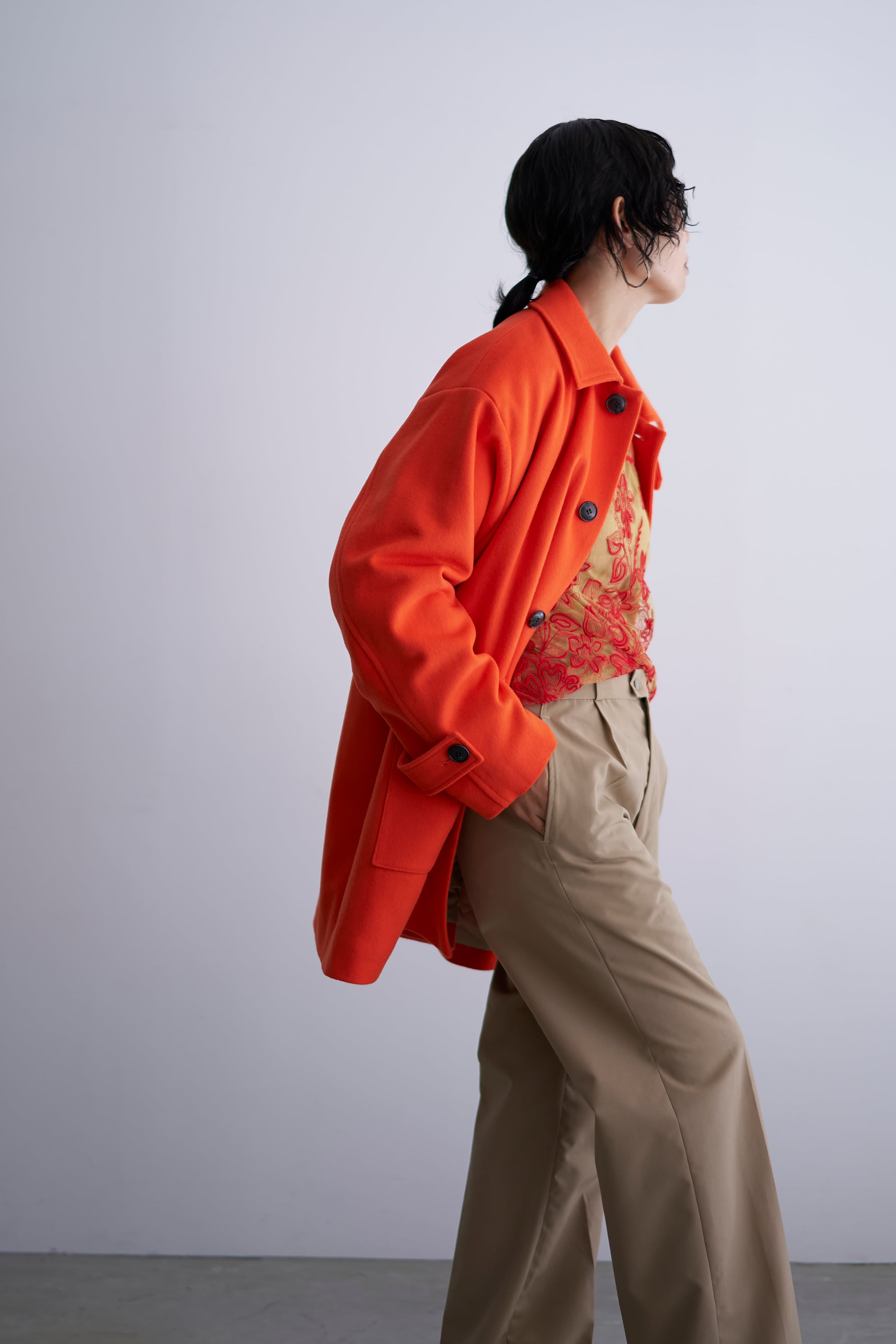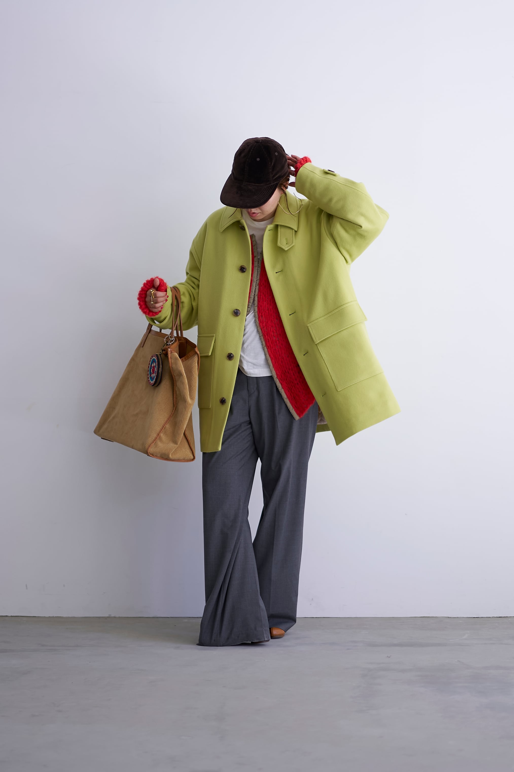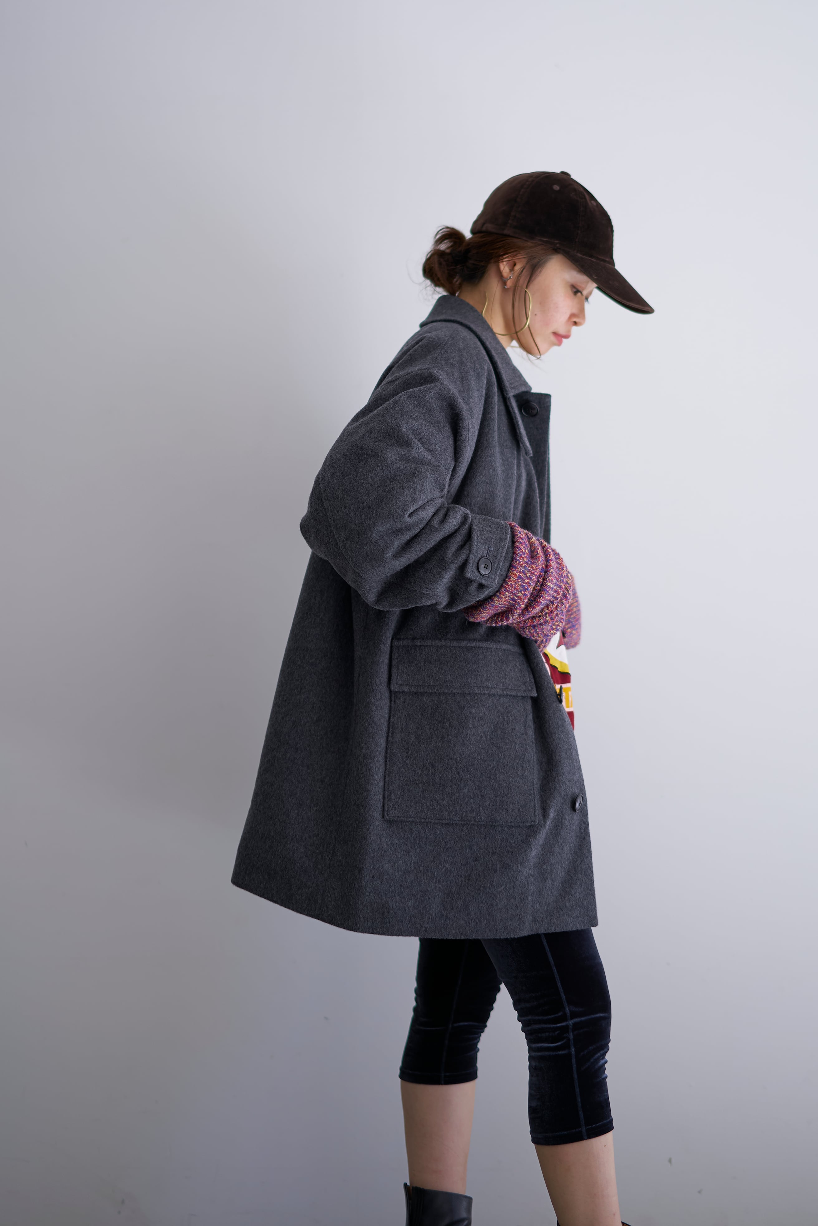 メンズライクでオーバーサイズなシルエットは中に厚手のニットも着て頂けます。