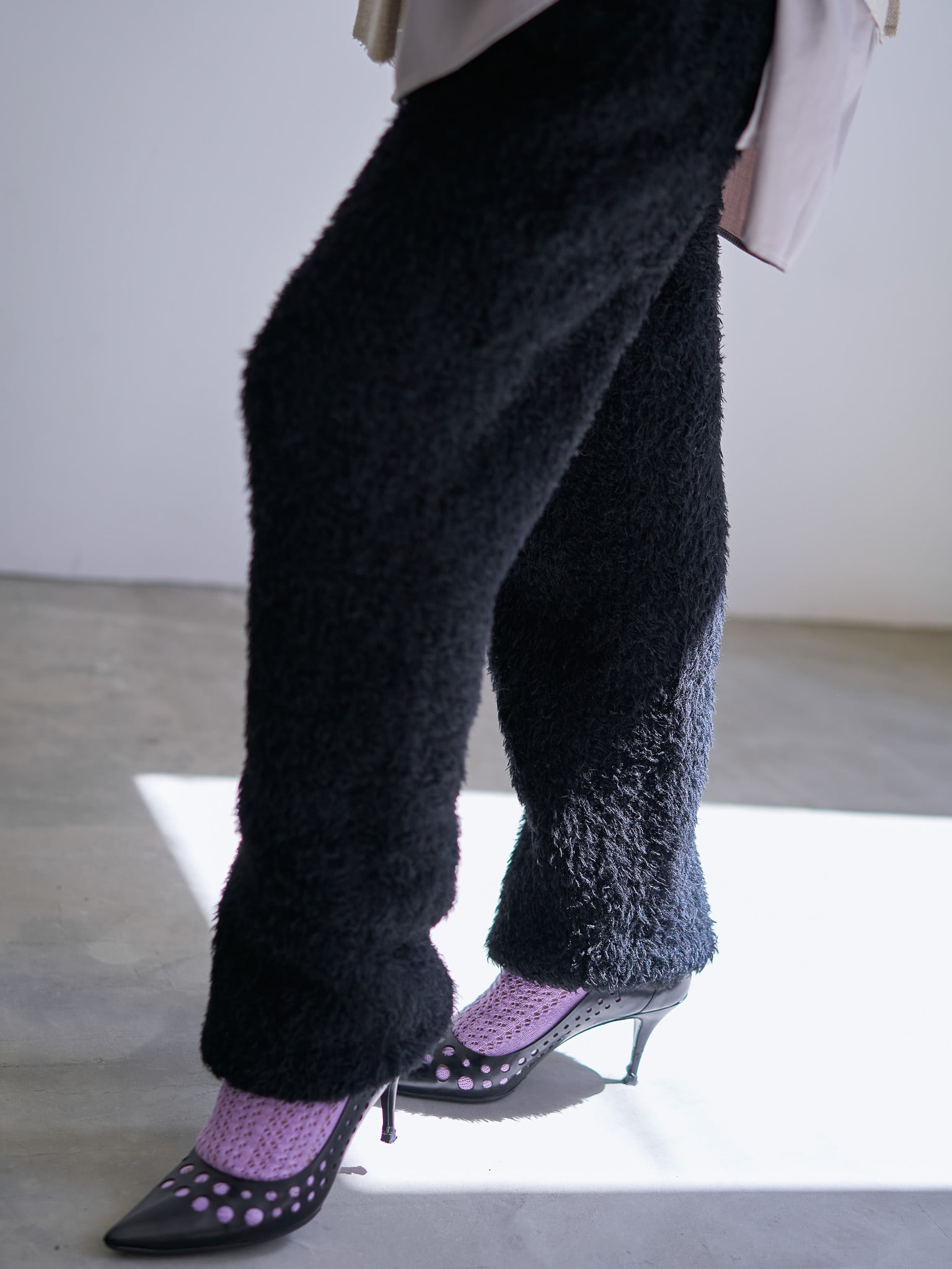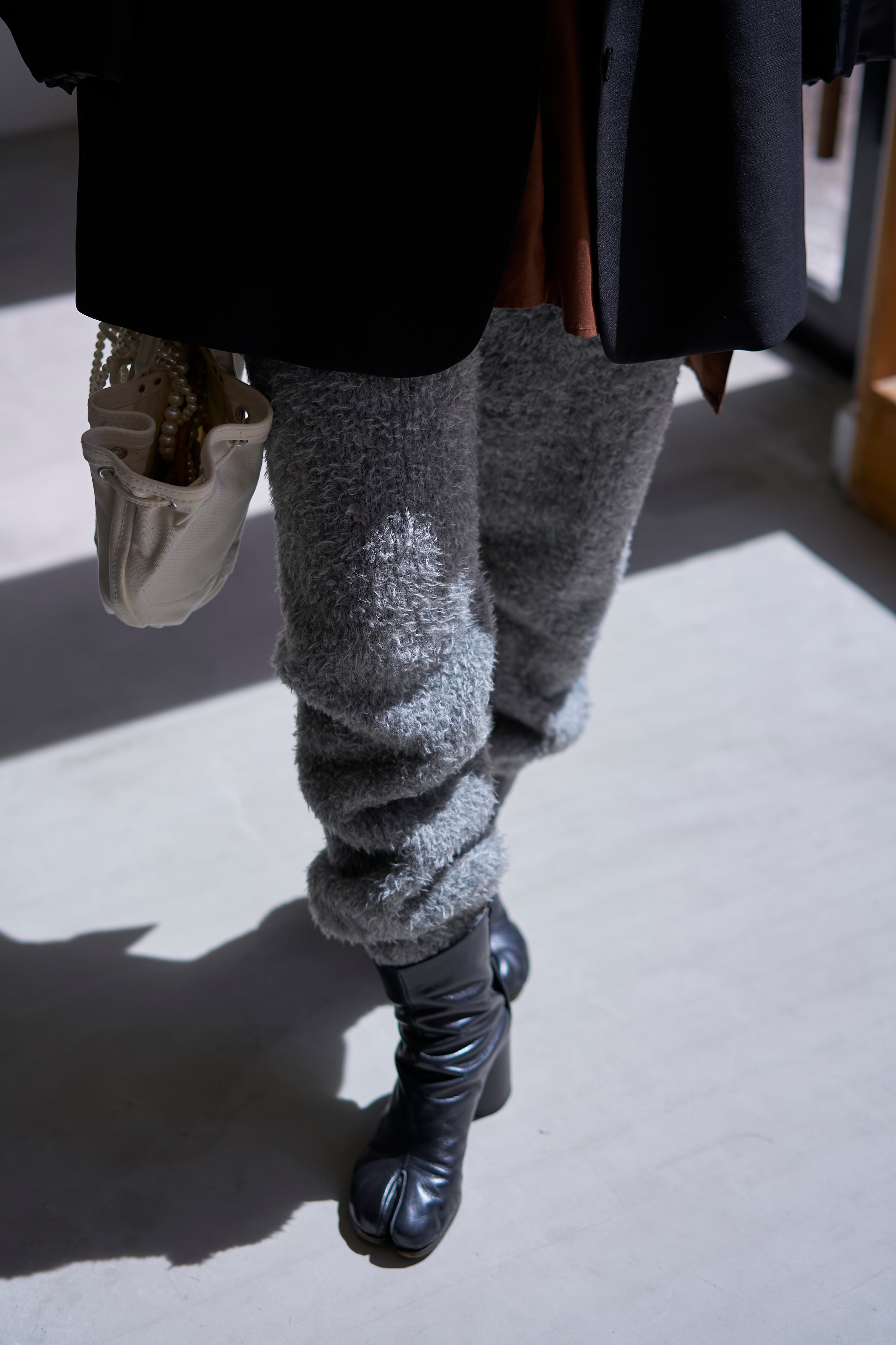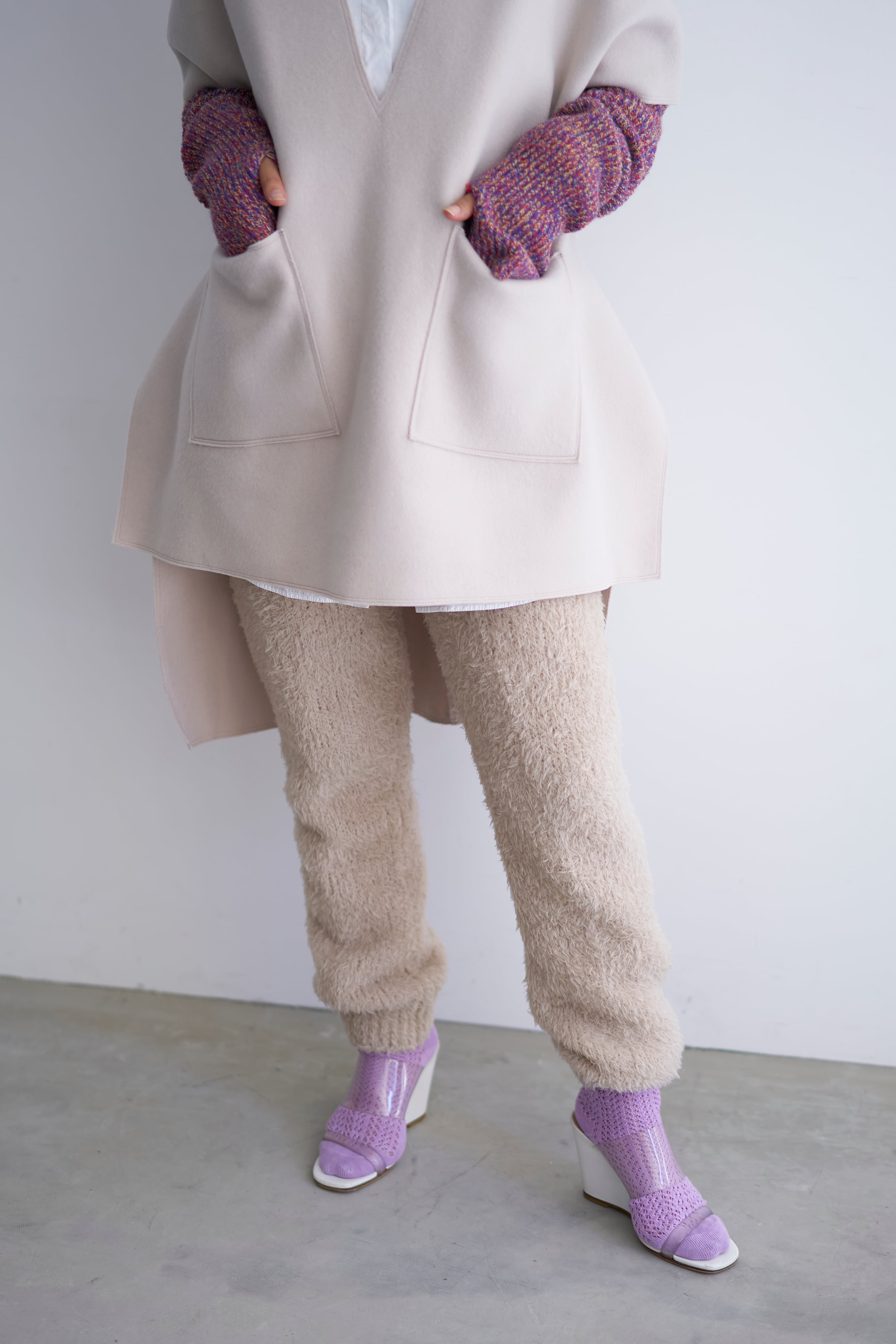 何年も愛用しているニットがあり、とても軽くて暖かく、毛玉になりにくく、なんといってもその見た目がとっても可愛いブリティッシュファーの糸を使用したニットパンツをつくりました。