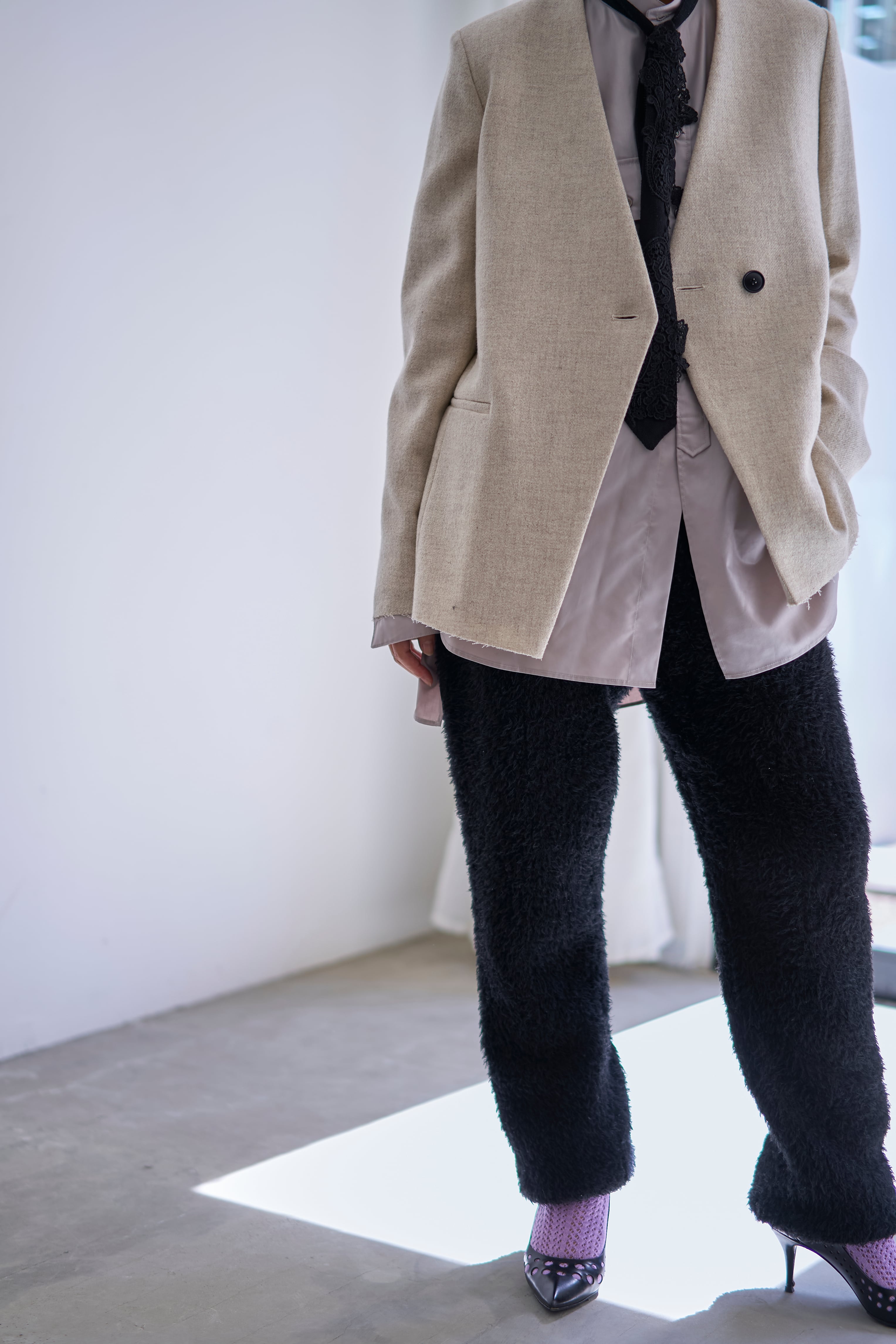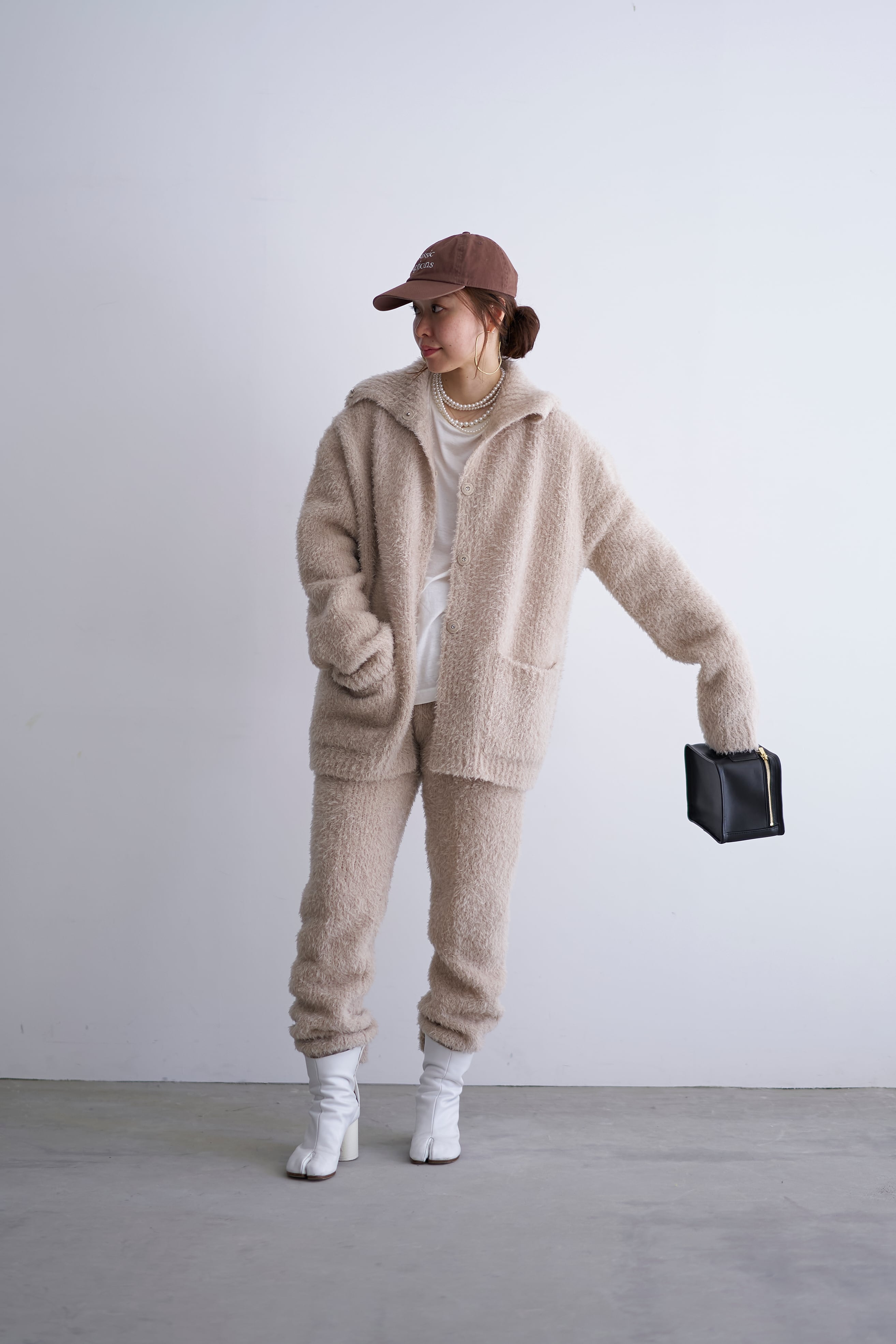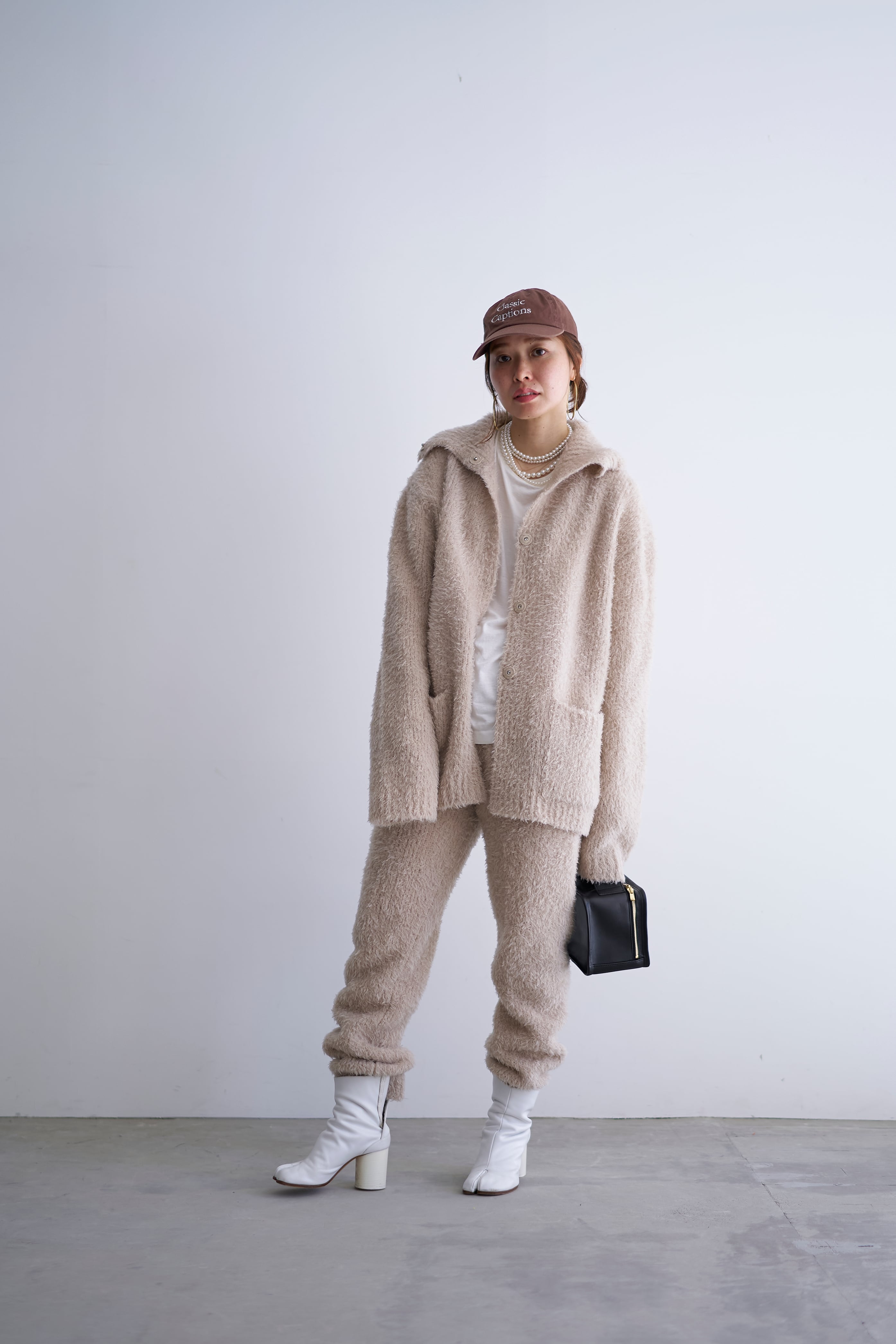 何年も愛用しているニットがあり、とても軽くて暖かく、毛玉になりにくく、なんといってもその見た目がとっても可愛いブリティッシュファーの糸を使用したニットパンツをつくりました。