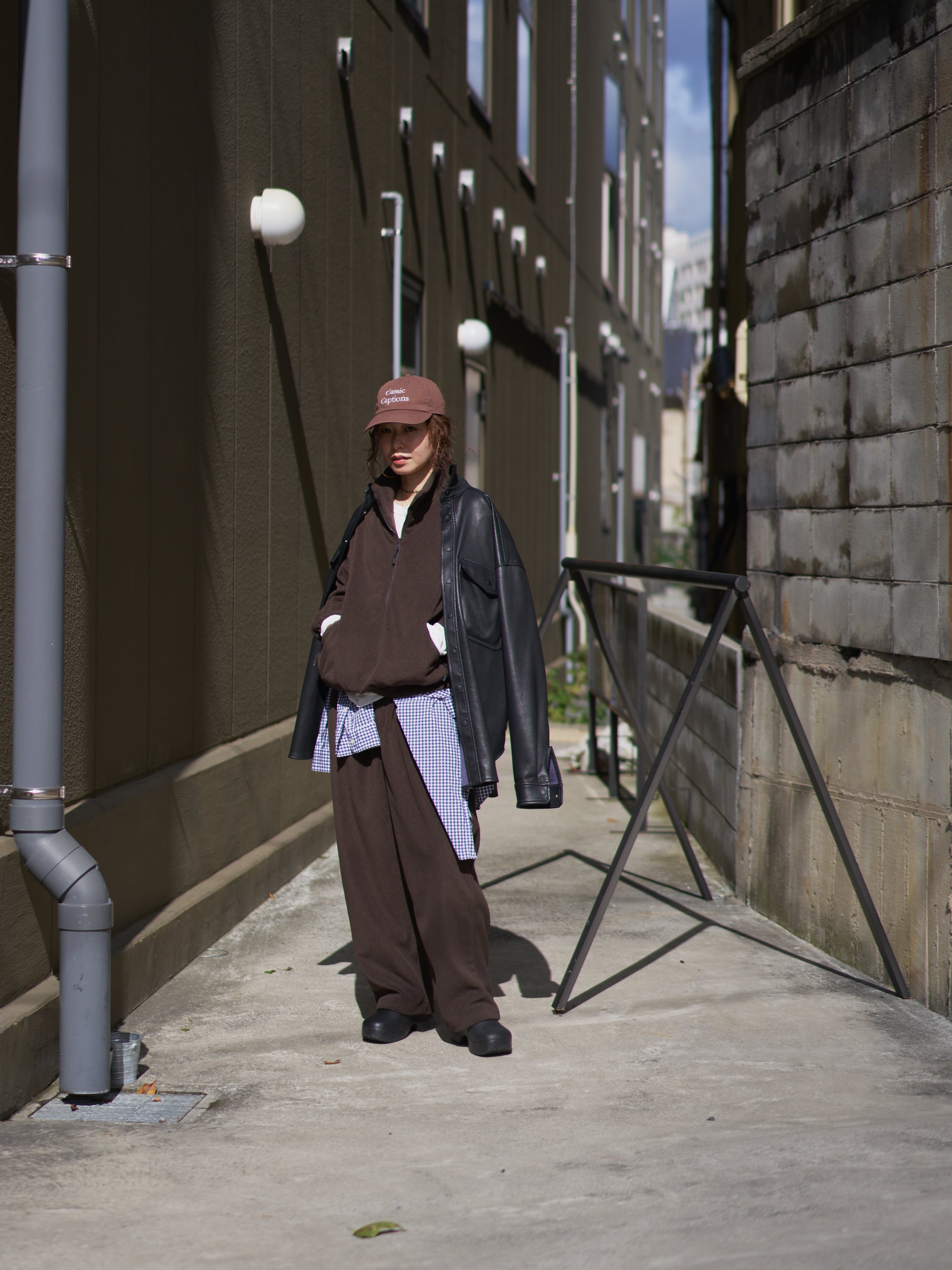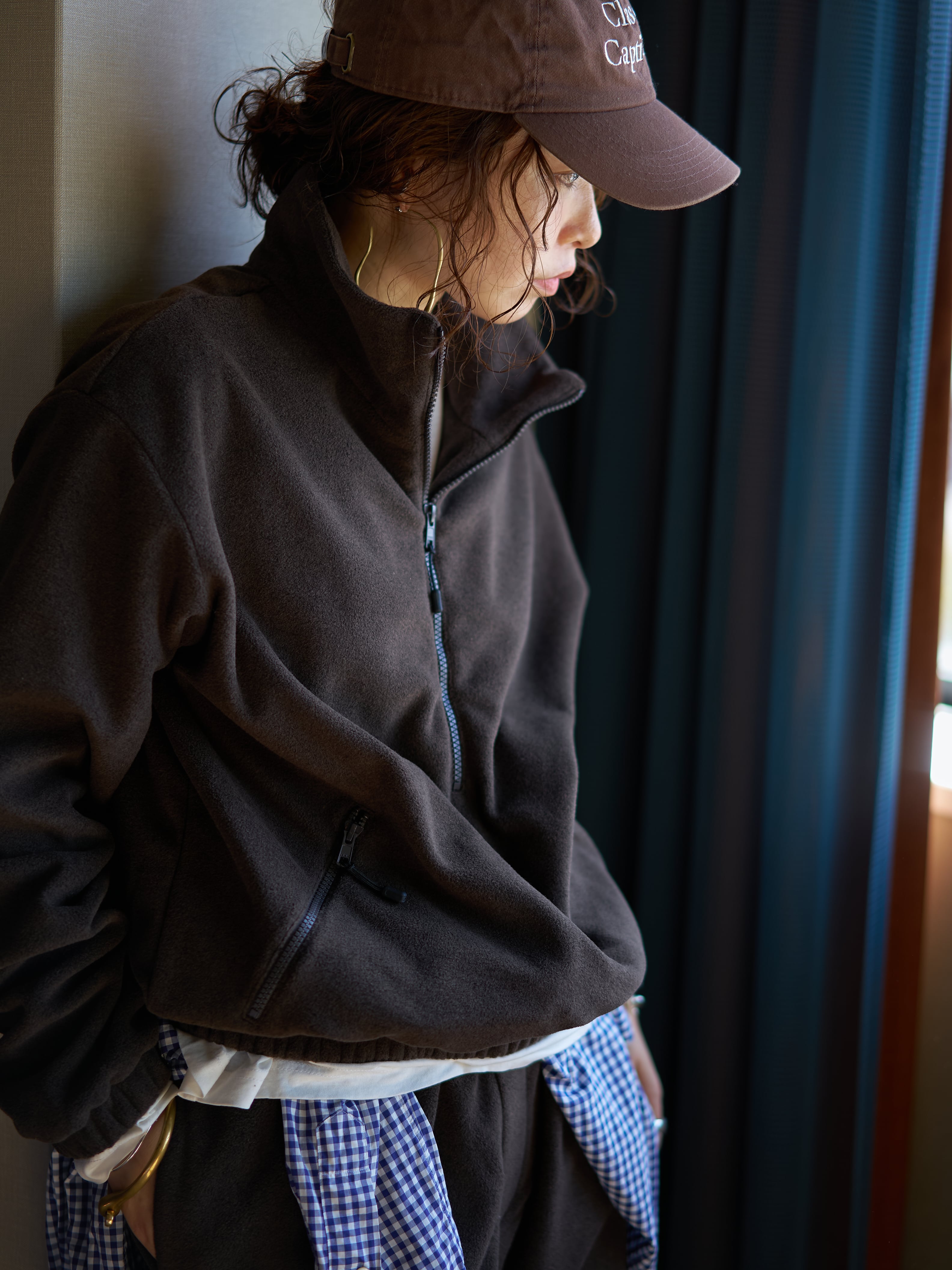 フリース素材ですが、柔らかく滑らかで美しい表面感なので上質感がありカジュアルになり過ぎず大人っぽく着て頂けます。
